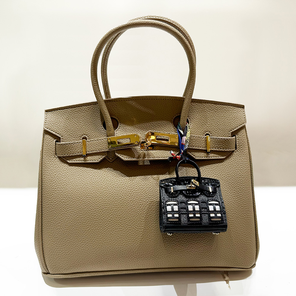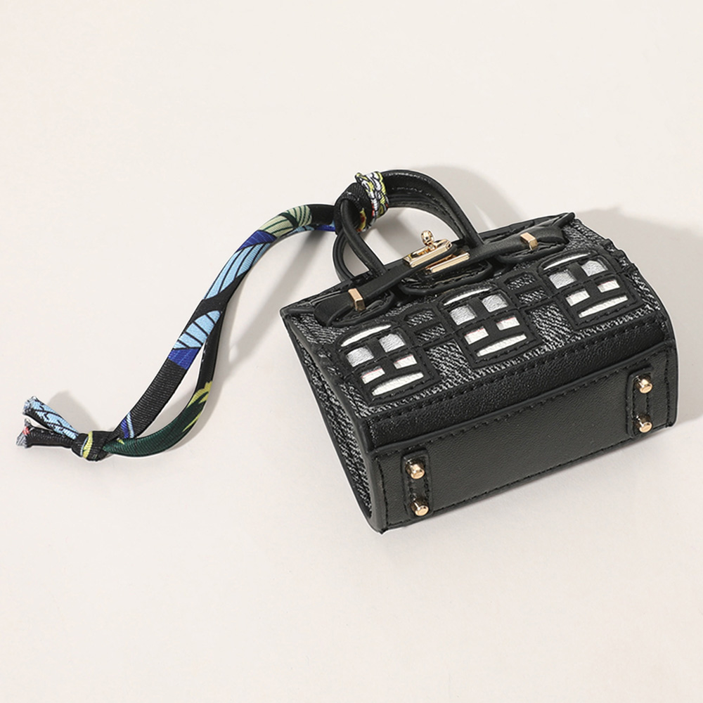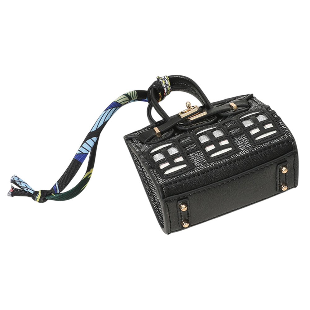 Details • Size : 3" X 2.6" X 1.2" • Strap Size : 7" L / Detachable, Fabric scarf-style strap for easy attachment • Miniature handbag-style lock closure • Decorative metal rivets and clasp hardware detail • fits Earphone, Earbuds, Small Accessory • Can be used as a keychain, bag charm, or collectible accessory • Material : 100% Polyurethane