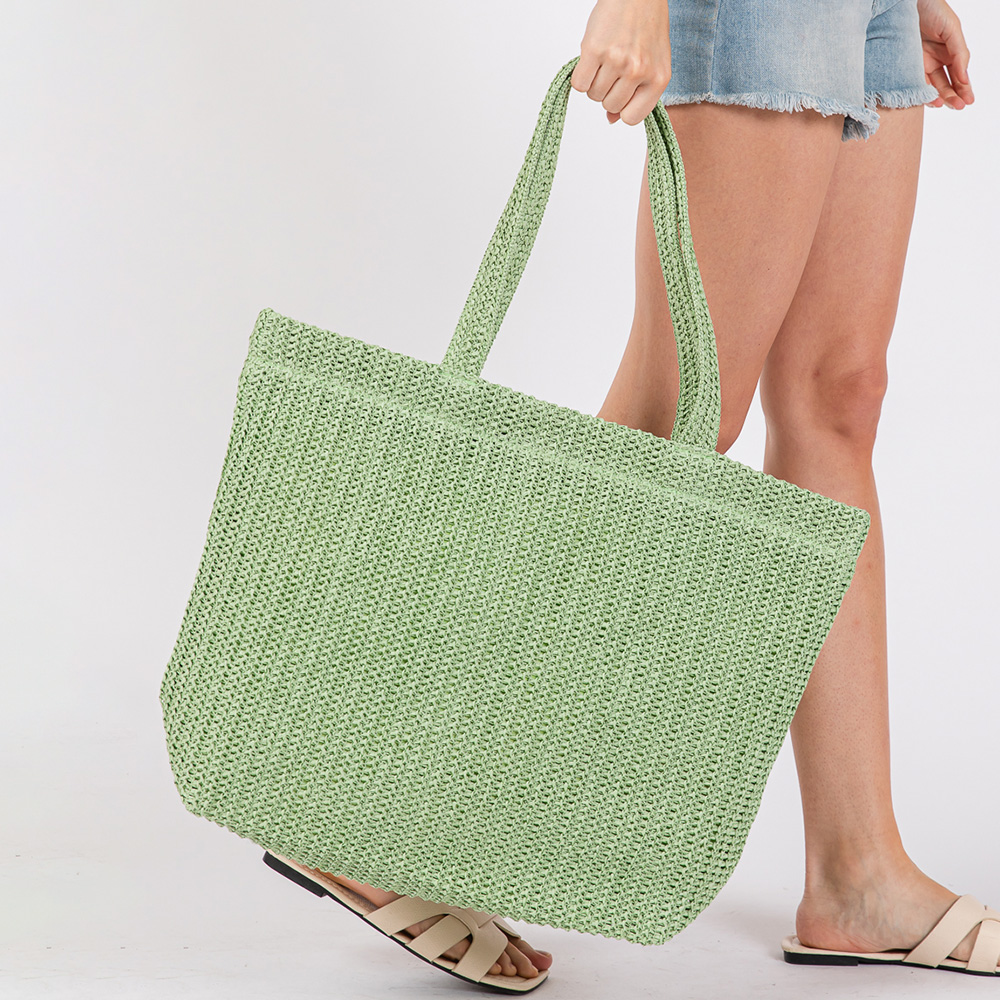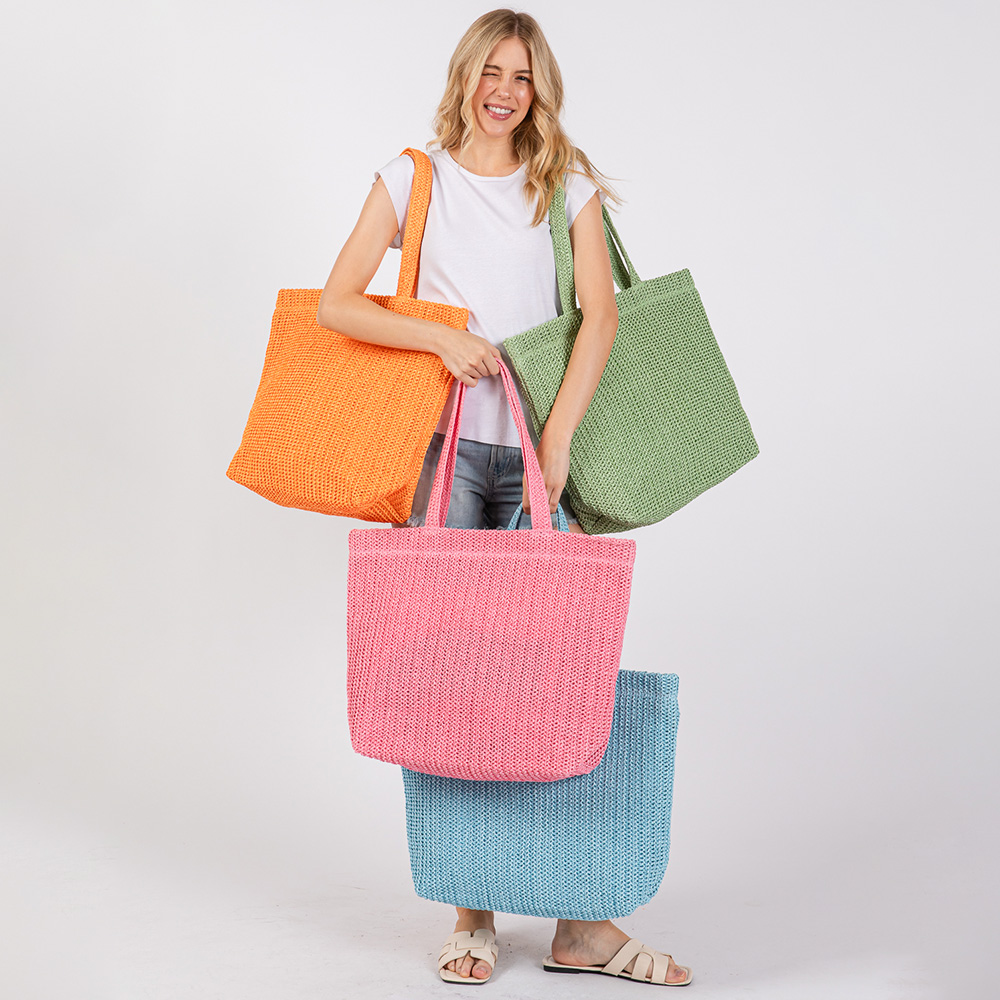 • Spacious woven tote bag featuring a roomy interior and sturdy double handles. Ideal for beach days, shopping, or casual outings with a lightweight yet durable construction for effortless everyday carry.