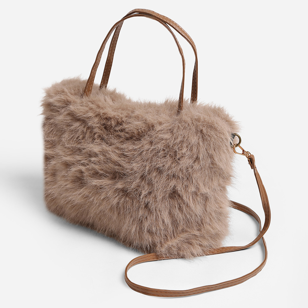 Solid Faux Fur Mini Handbag  Crossbody Bag