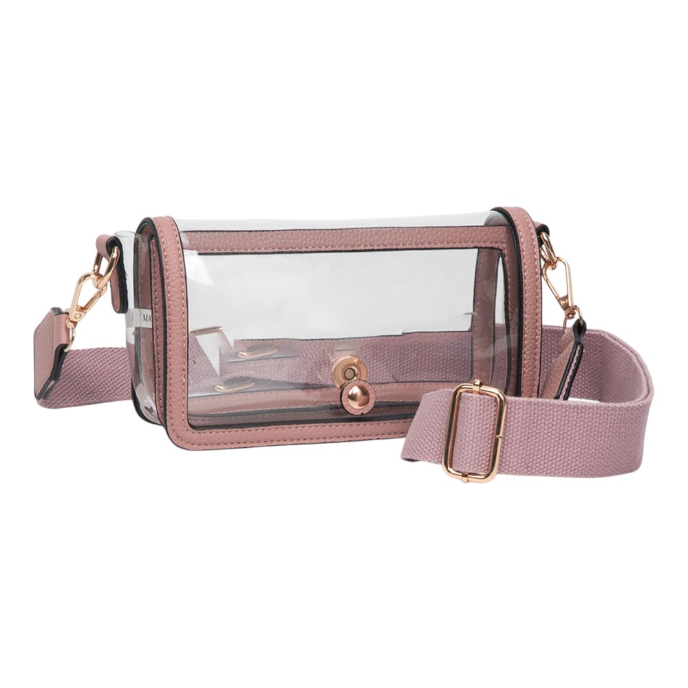 • Stay stylish and compliant with this clear stadium-approved crossbody bag, featuring black trim, secure snap closure, and an adjustable shoulder strap for comfort. Perfect for concerts, sporting events, festivals, and everyday use, offering convenience while meeting event regulations with ease.