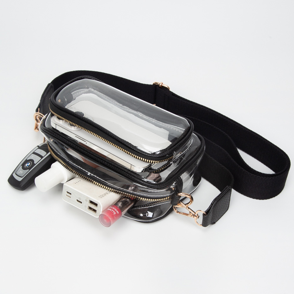 • Be game day ready with this clear stadium-approved crossbody bag, featuring white trim, dual zip compartments, and an adjustable strap for hands-free comfort. Perfect for concerts, sporting events, festivals, and venues with clear bag policies, offering style, security, and convenience on the go.