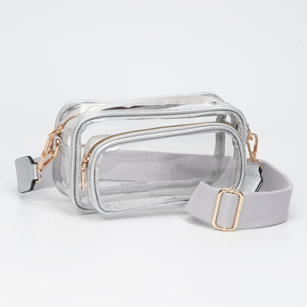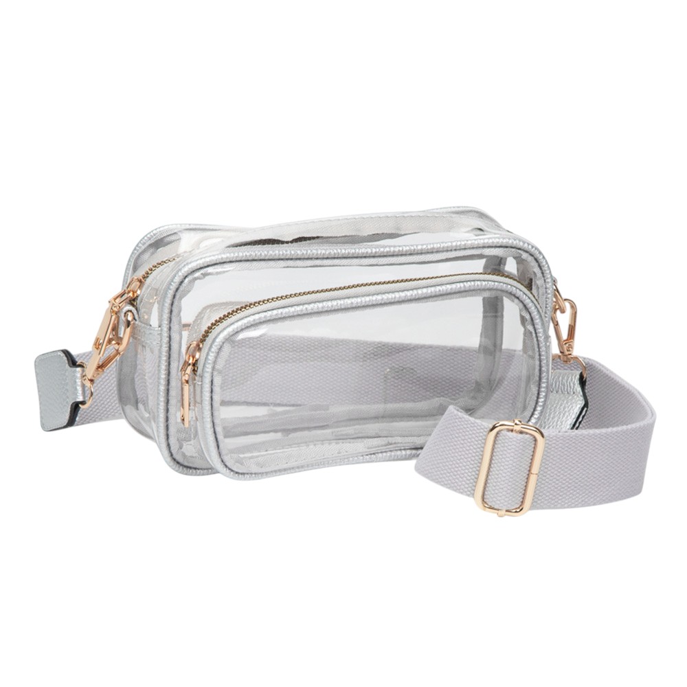 • Be game day ready with this clear stadium-approved crossbody bag, featuring white trim, dual zip compartments, and an adjustable strap for hands-free comfort. Perfect for concerts, sporting events, festivals, and venues with clear bag policies, offering style, security, and convenience on the go.