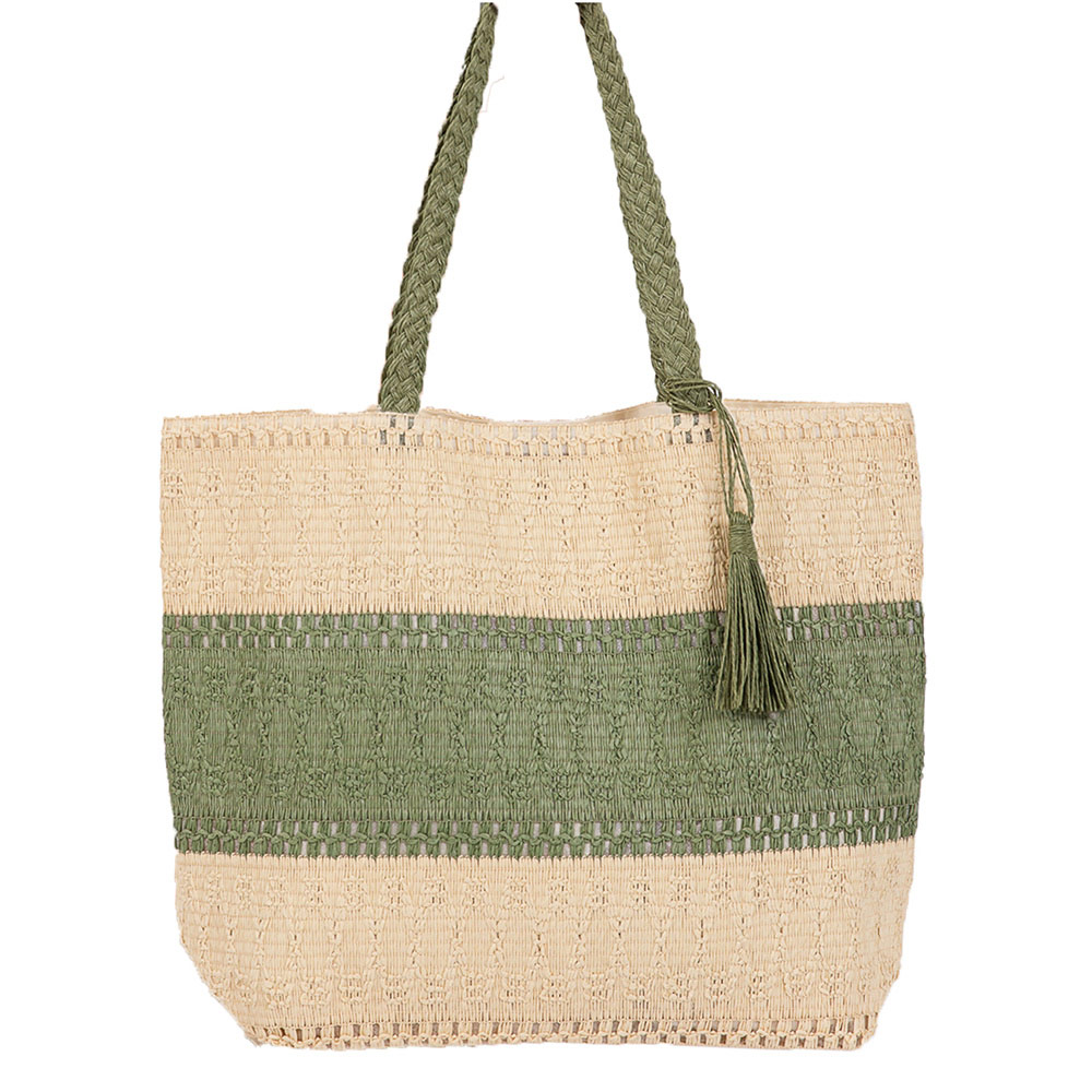 Two Tone Color Block Woven Tassel Straw Tote Bag / Beach Bag