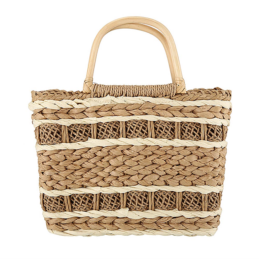 • Chic straw handbag featuring wood handles and detailed rattan accents. Durable, stylish, and ideal for casual outings, beach days, or summer events. Handcrafted boho elegance.