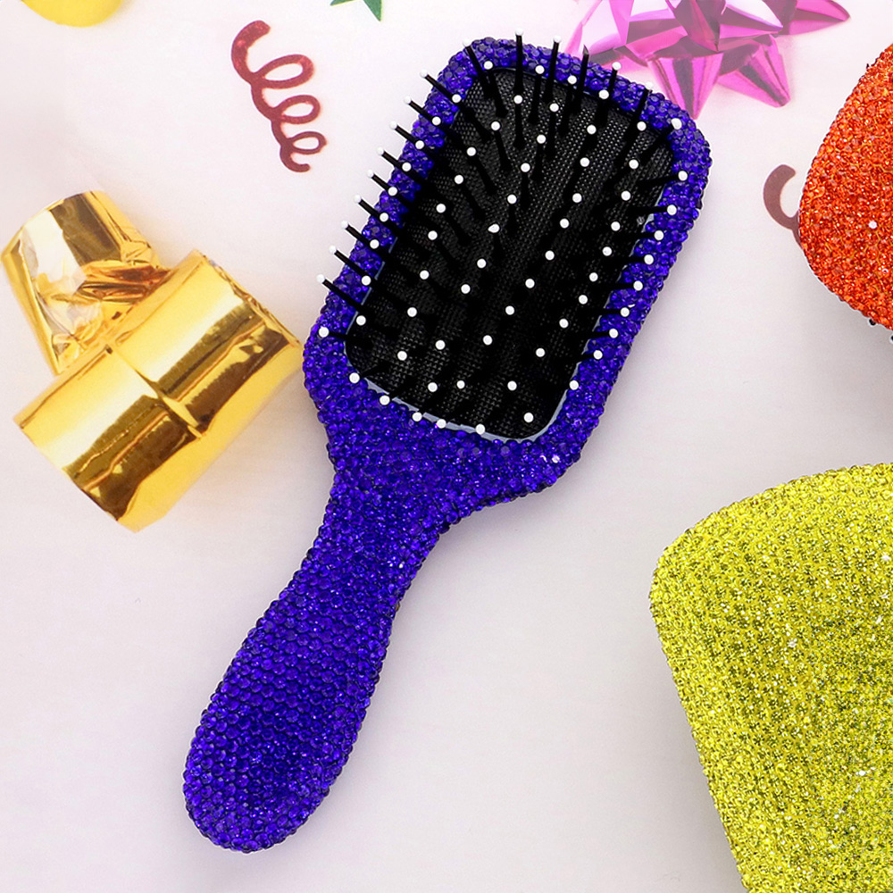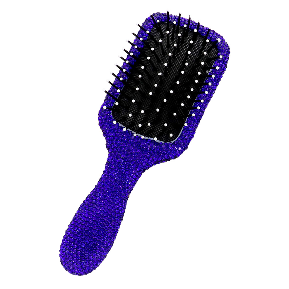 • Elegant paddle hair brush adorned with rhinestones for a stylish touch. Ideal for detangling and smoothing hair with ease, featuring ball-tip bristles for gentle grooming.