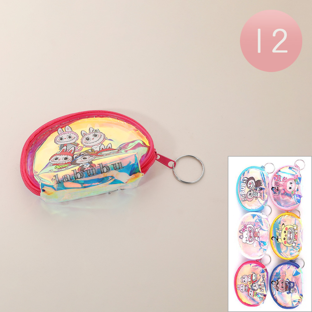 Details • Size : 4" X 3" • Zipper Closure • Keep your coins, keys, and small essentials secure with this cartoon character mini coin purse keychain. Featuring a fun printed design and compact size, it’s perfect for everyday use or as a cute gift. Lightweight and portable, this accessory adds playful charm while keeping your essentials organized.