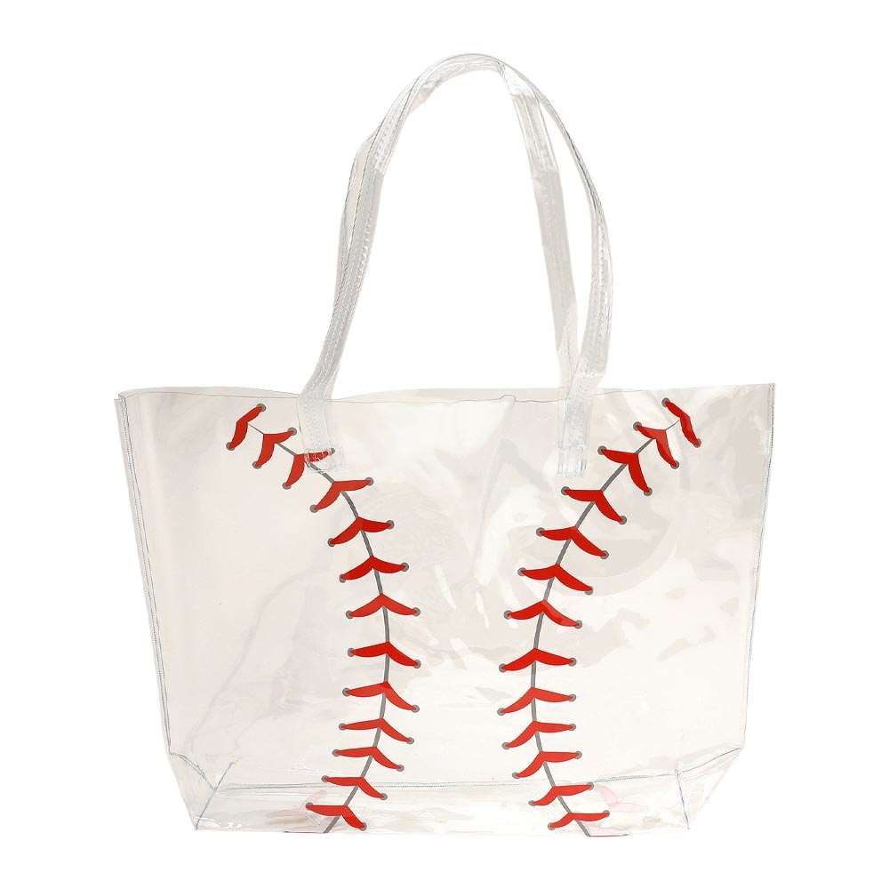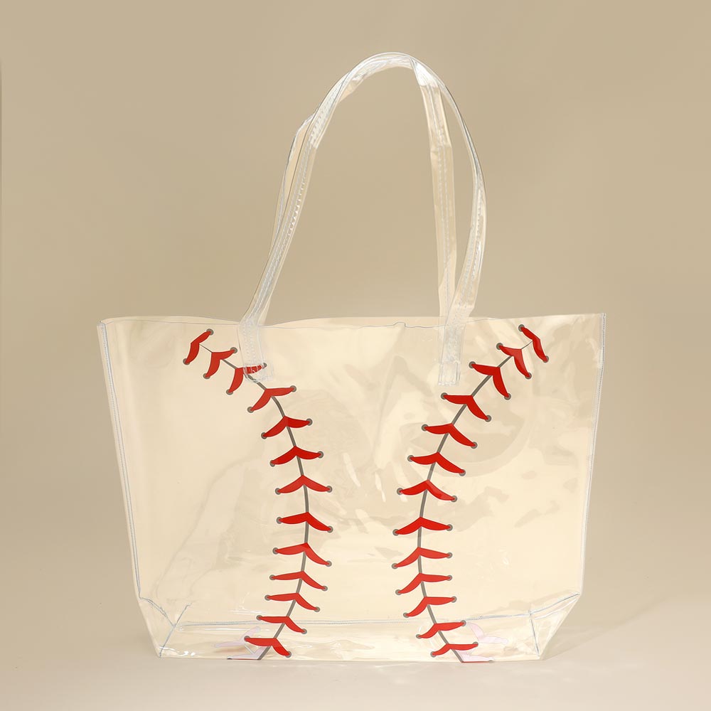 • A spacious clear tote bag with a baseball-themed design, ideal for game days, shopping, travel, or daily use. Features easy-to-carry handles and roomy storage for personal items, snacks, and accessories while offering a fun sporty style.