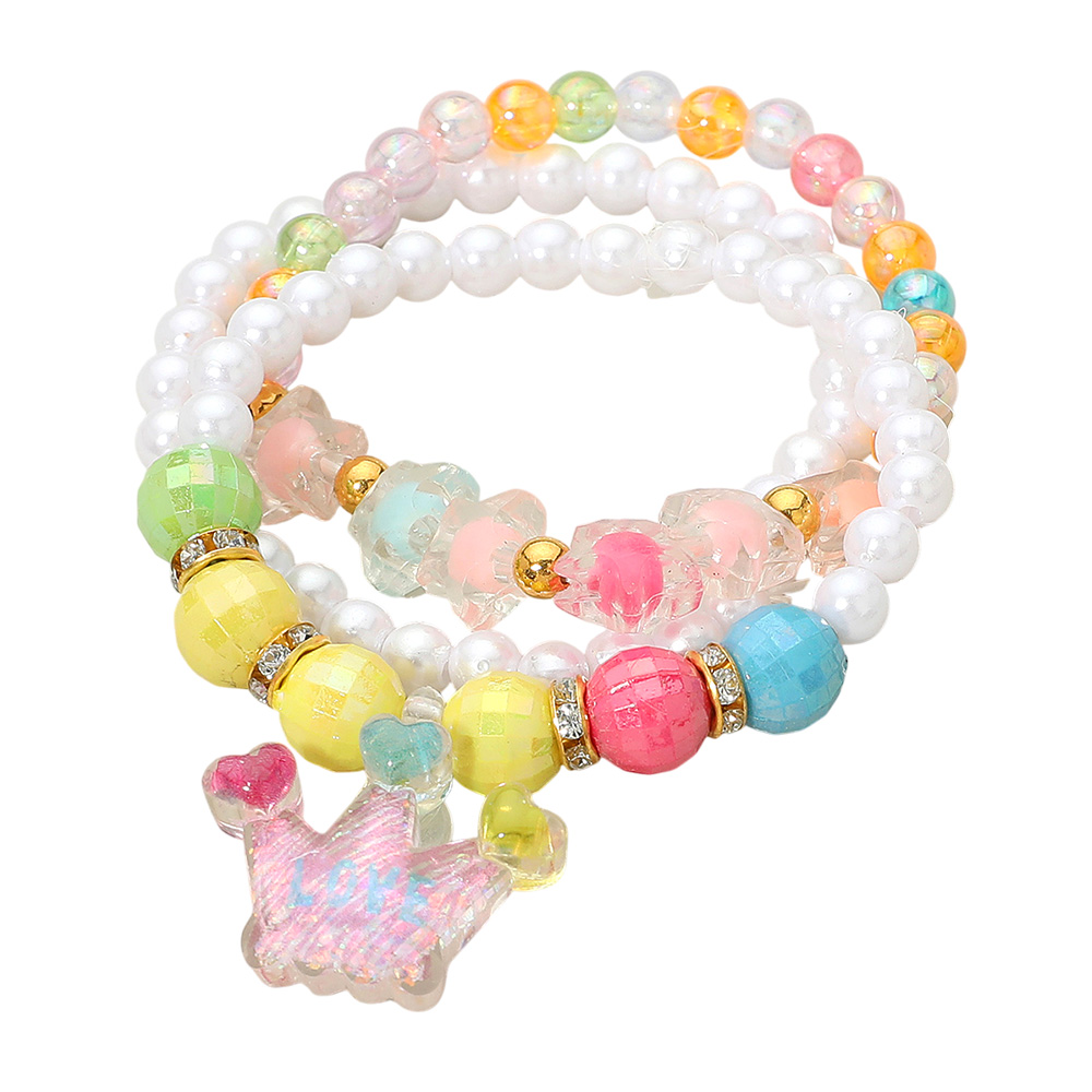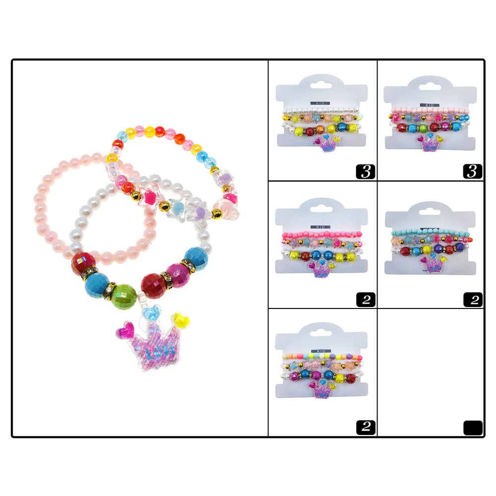 Details • Size : 1.8" H • Stretchable • Charming kids’ bracelet set featuring a playful crown charm, glitter details, and assorted beads in a stretchy design. Perfect for birthdays, parties, or everyday outfits, this 12-piece pack adds fun, sparkle, and whimsical style to children’s accessories, making it a delightful gift choice.