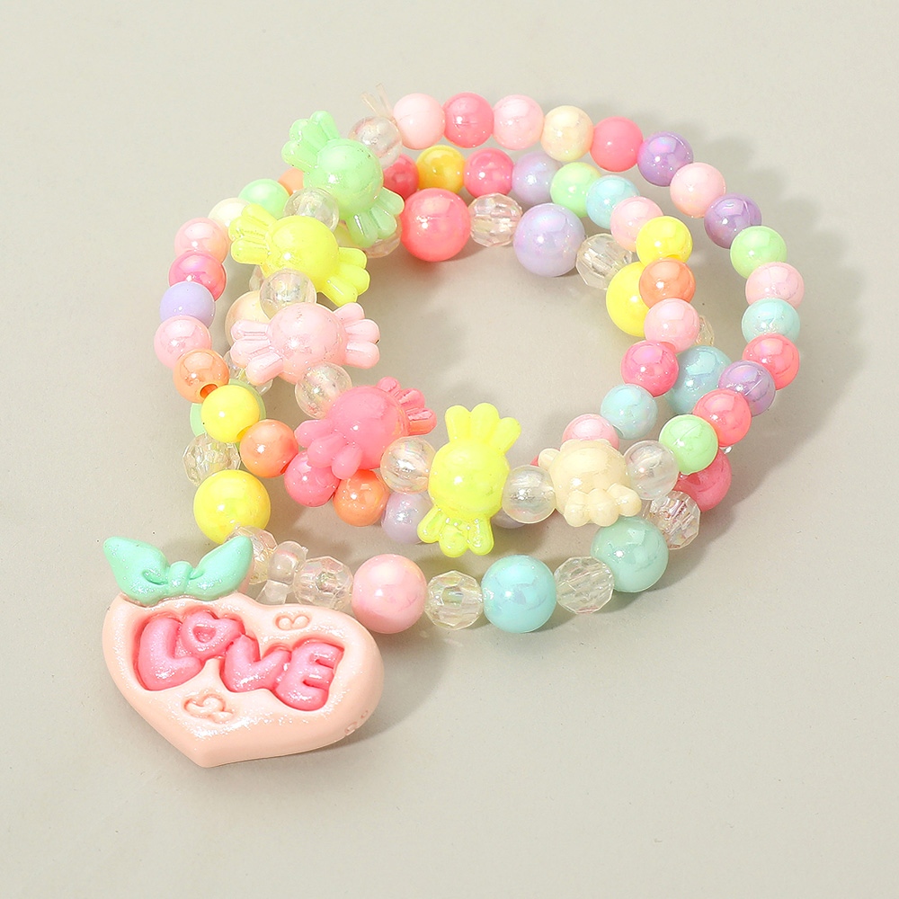 Details • Size : 1.8" H • Stretchable • Charming kids’ bracelet set featuring a love heart charm, flower bead accents, and playful stretch design. Perfect for parties, daily outfits, or gift bags, this 12-piece jewelry pack adds creativity, fun, and trendy style to children’s accessories, making it a delightful addition to any collection.