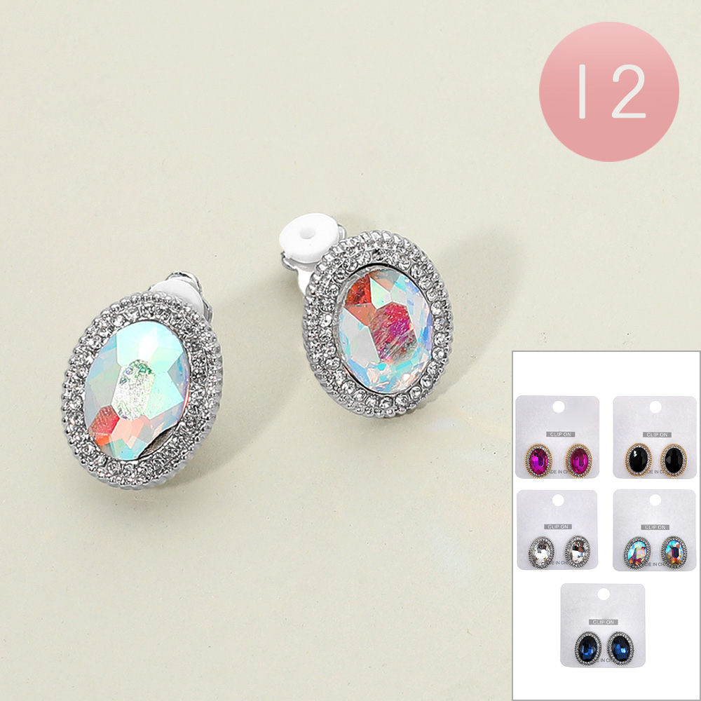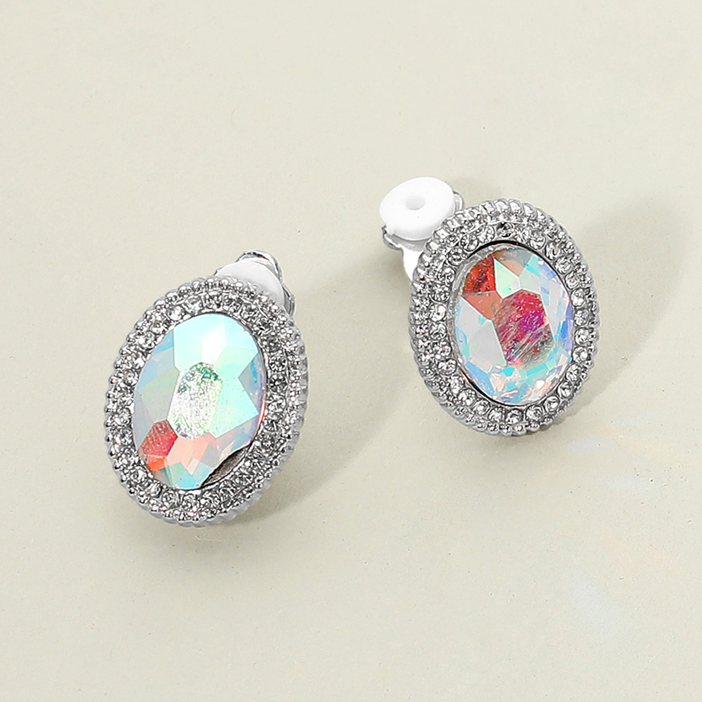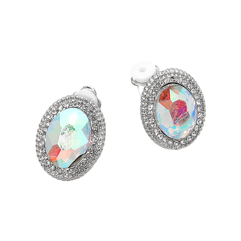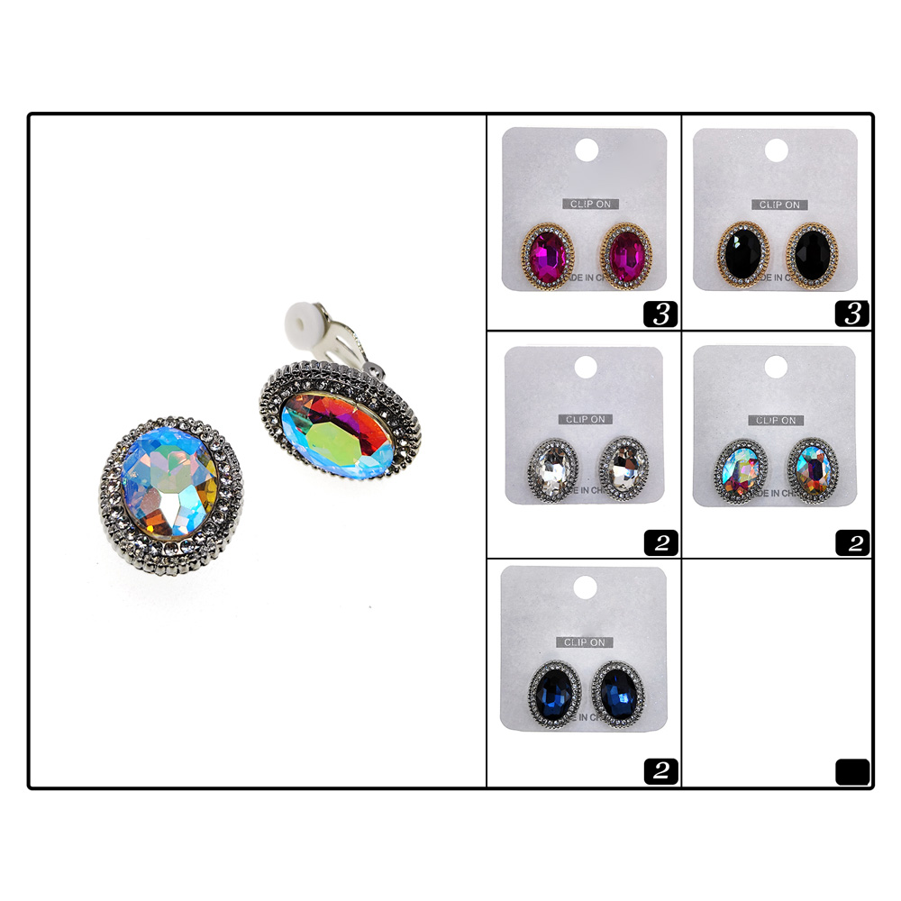 Details • Size : 0.7" X 0.75" • Clip On • Stand out with these oval clip-on earrings featuring a faceted gemstone center framed by a sparkling rhinestone halo. Designed for non-pierced ears, these bold statement earrings bring glamour and elegance to parties, weddings, and evening looks, adding brilliance to every outfit.