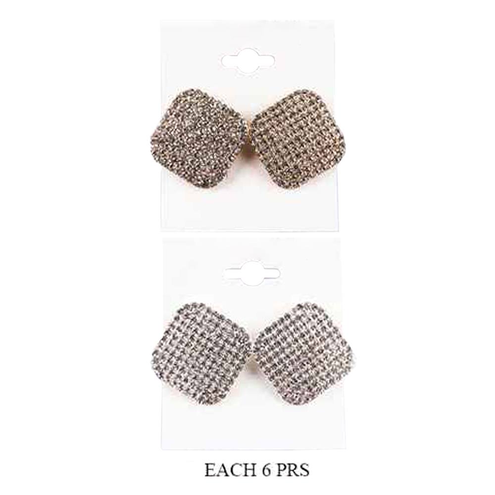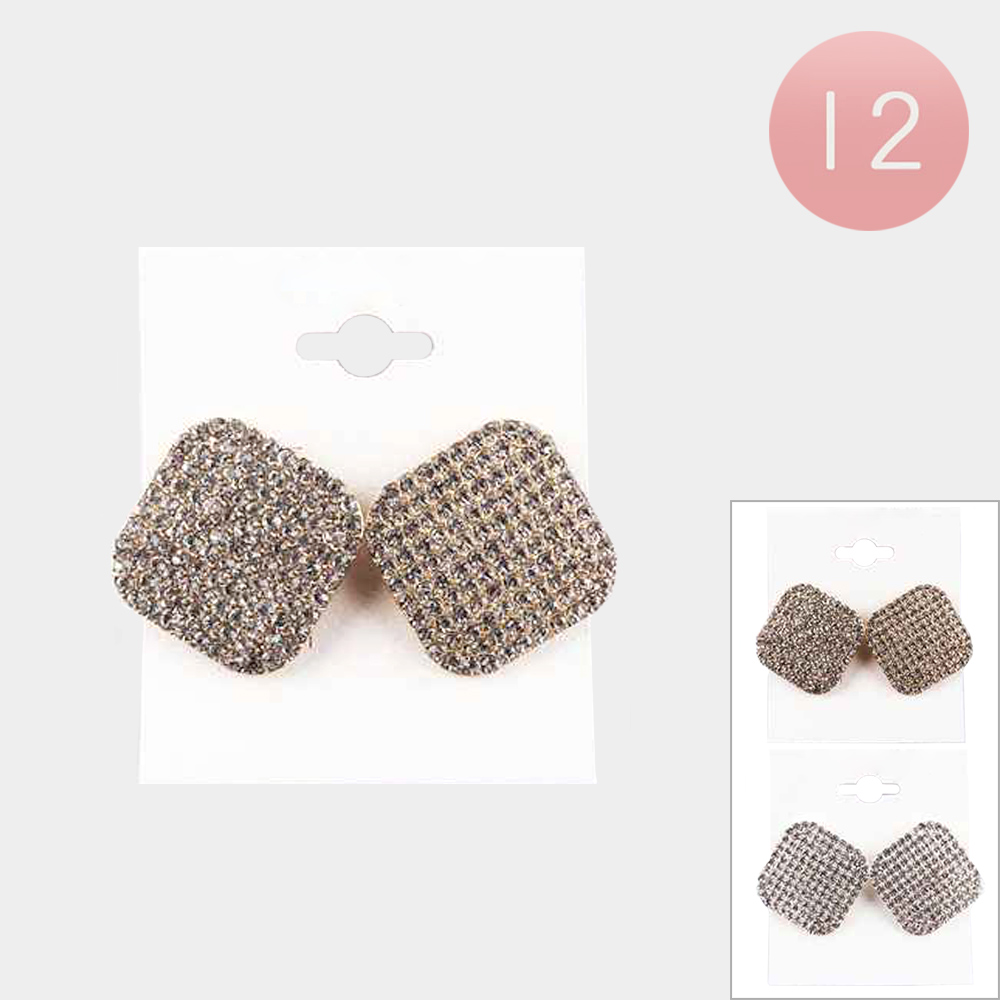 12Pairs - Rhinestone Embellished Square Clip on Earrings