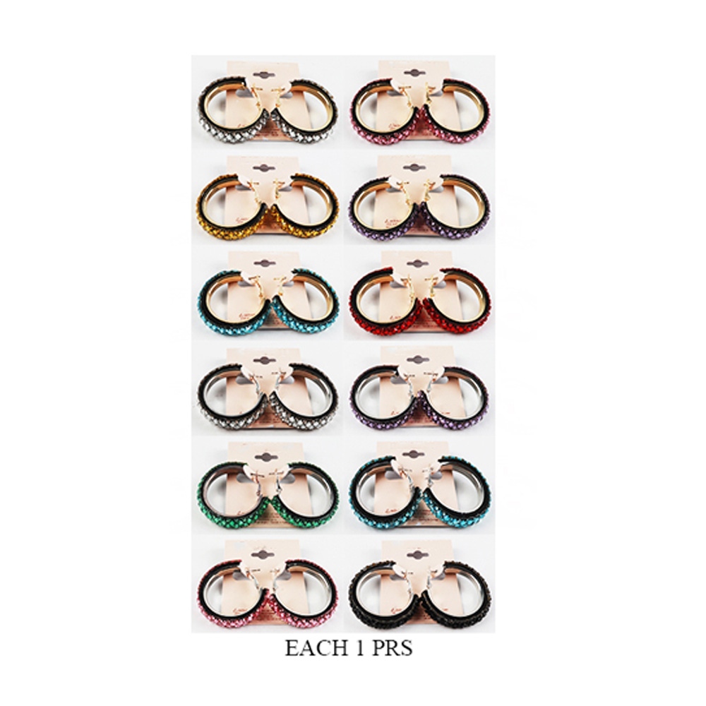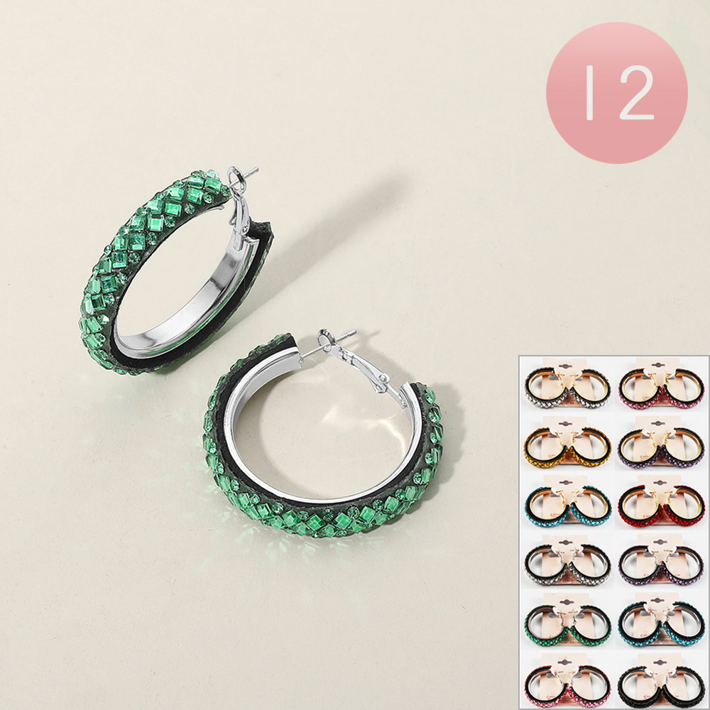 12Pairs - Stone Studded Hoop Earrings