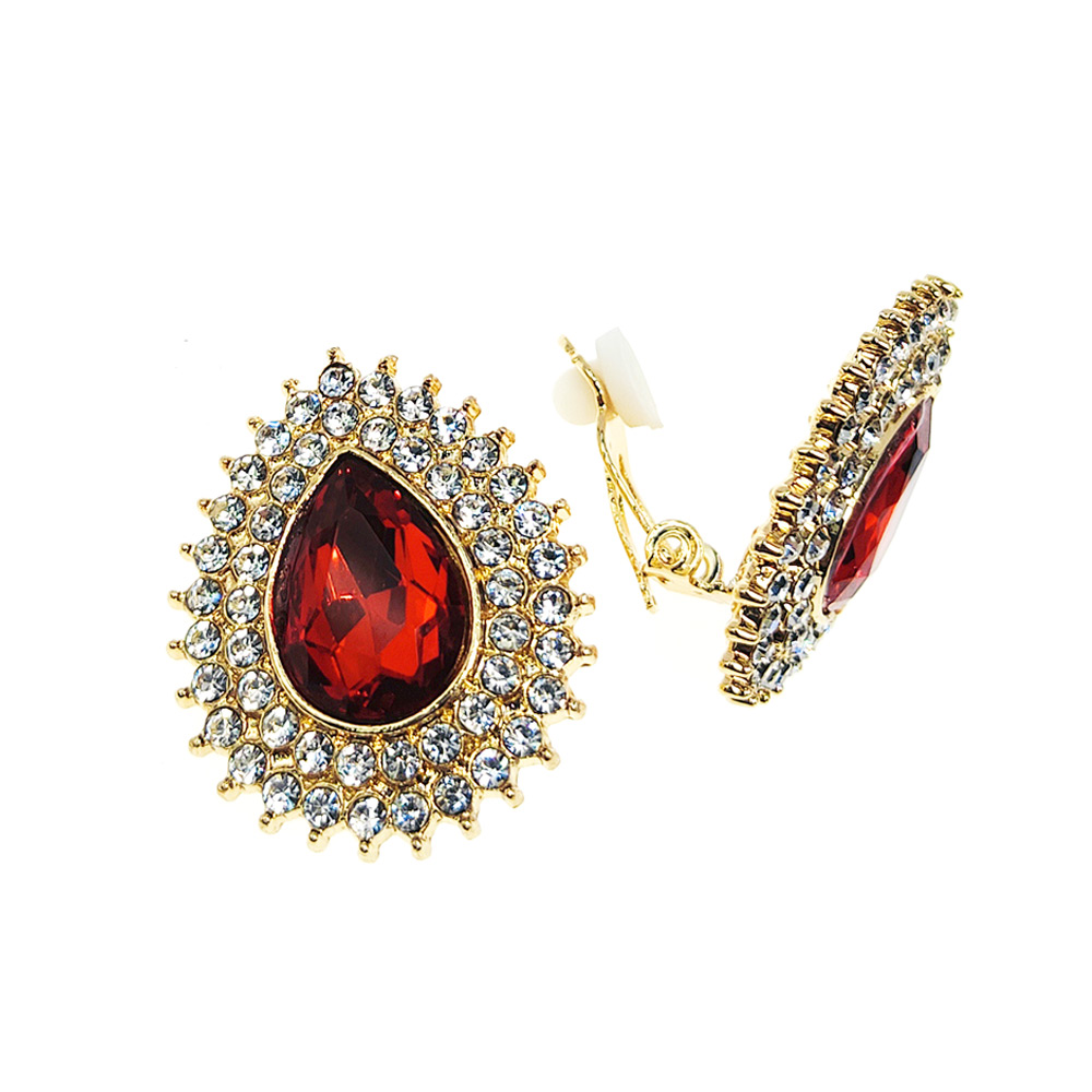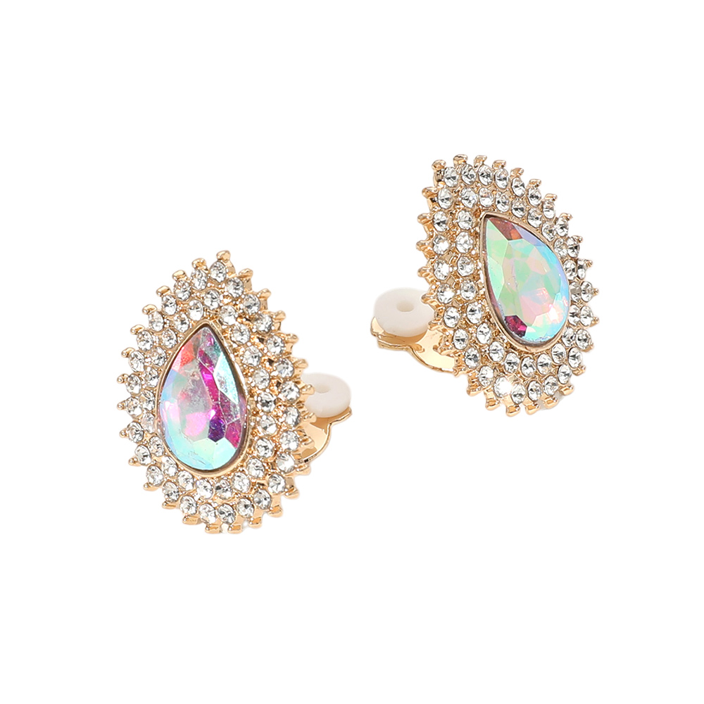 • Elegant teardrop-shaped clip-on earrings surrounded by a sparkling rhinestone border. Ideal for non-pierced ears