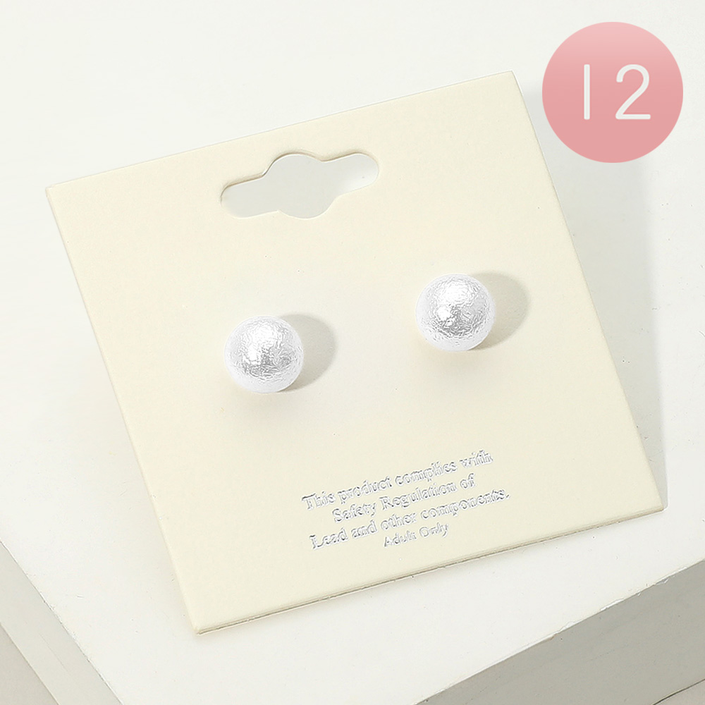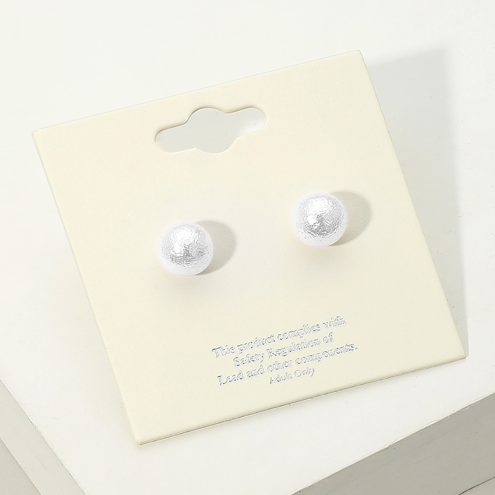 Details • Size : 0.25" X 0.25" • Post Back • These textured pearl ball stud earrings feature a modern, minimalist design that complements any outfit. Perfect for everyday wear or elegant occasions, their subtle shimmer and refined finish make them a timeless accessory that enhances effortless sophistication. • Lead and Nickel Compliant