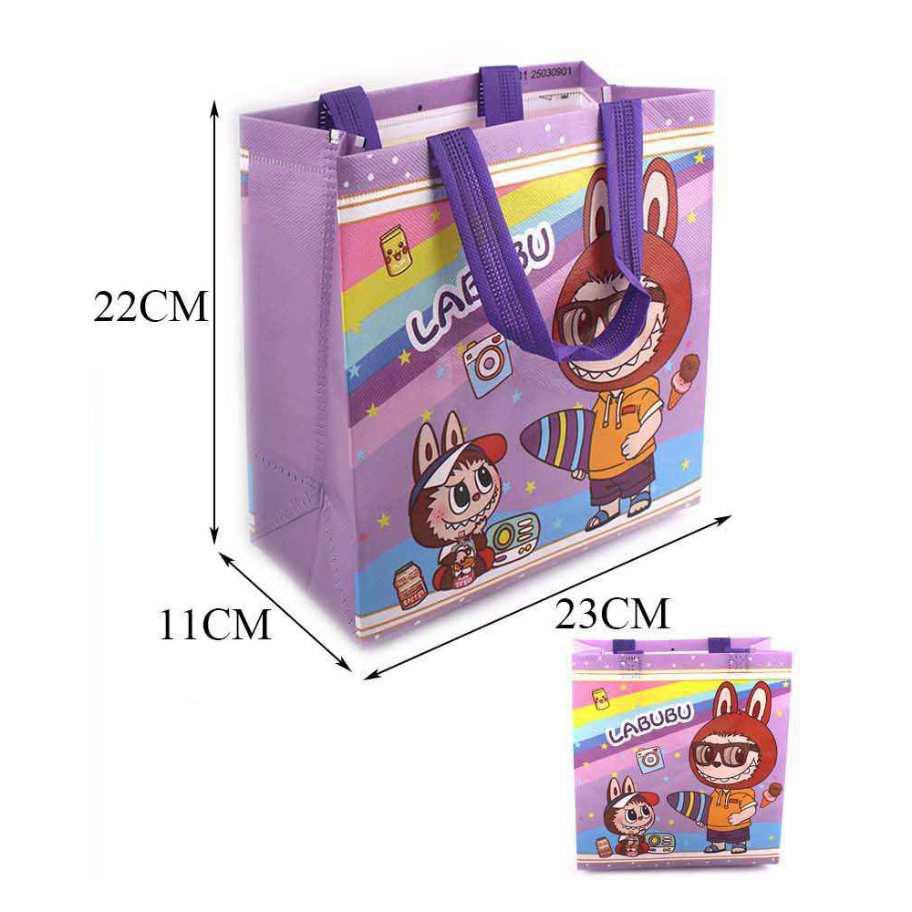 Details • Size : 8.6" X 9" X 4.3" • Top Handle Size : 5" L • A reusable gift tote bag featuring playful cartoon designs, perfect for party favors, gift wrapping, shopping, or everyday carry. Lightweight and roomy for treats or small items, adding cheerful style to birthdays, events, and celebrations.