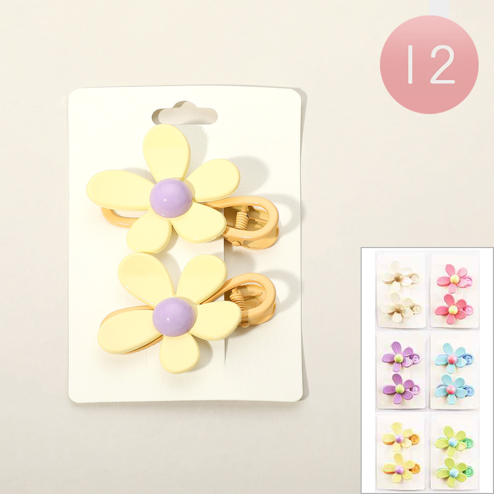 12 SET OF 2 - Flower Alligator Snap Hair Clip Set
