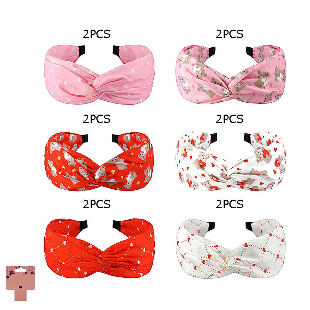 Details • Size : 2.5" H • This knotted headband is styled with a playful heart print and a soft, wrapped design that offers a secure and comfortable fit. Perfect for casual wear, themed outfits, or special occasions, it adds a charming touch to any hairstyle and keeps hair neatly in place with ease.