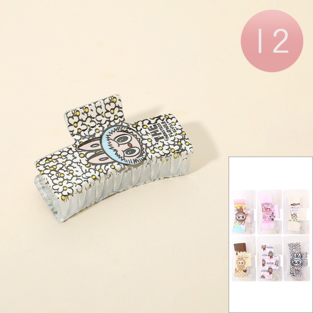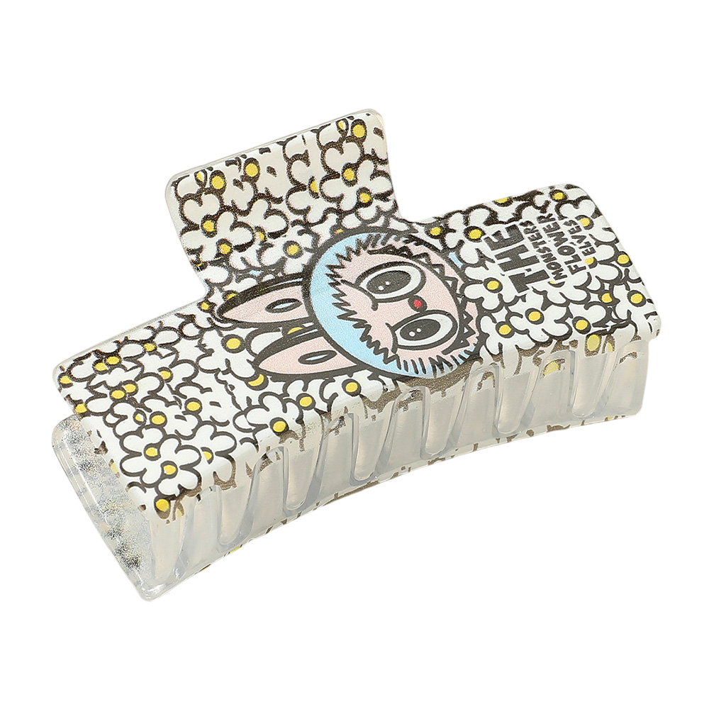Details • Size : 3.3" X 1.7" • Adorable printed hair claw featuring playful character art and a daisy floral design. Strong grip keeps hair secure and stylish all day. Perfect for casual looks, school, or fun outings, this quirky accessory blends practicality with personality. A trendy must-have for kids, teens, and playful styles.