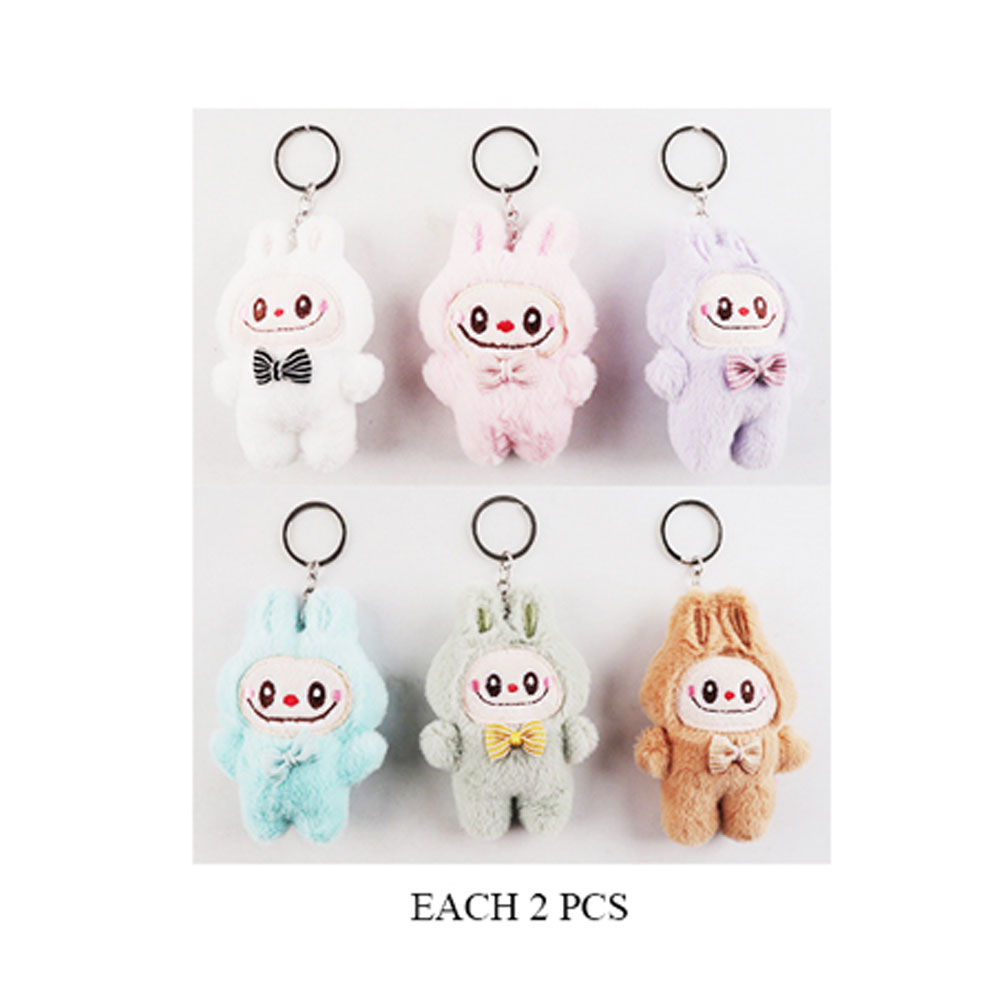 Details • Size : 5.6" L, 3.25" X 4.25" • Adorable plush bunny keychains with embroidered faces and bow tie detail. Includes 12 soft figures with metal key rings—perfect for party favors, gifts, or cute bag accessories for all ages.
