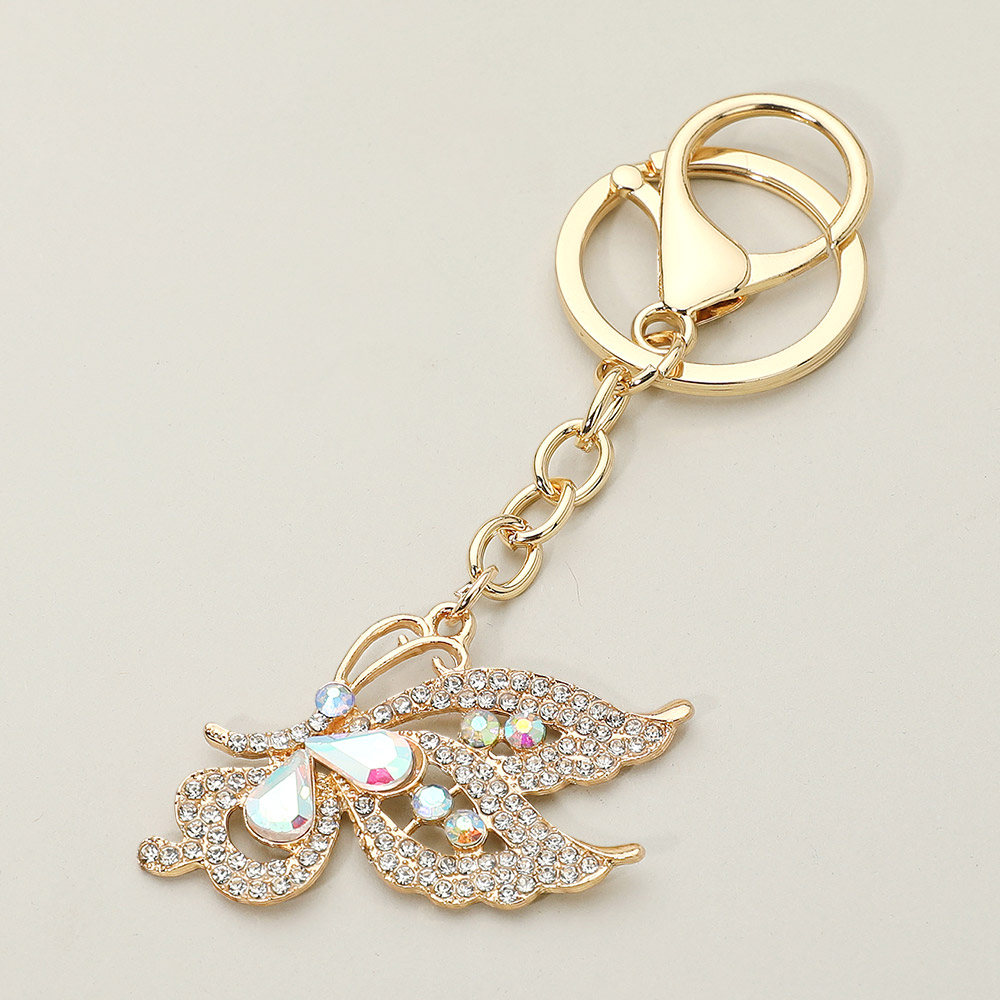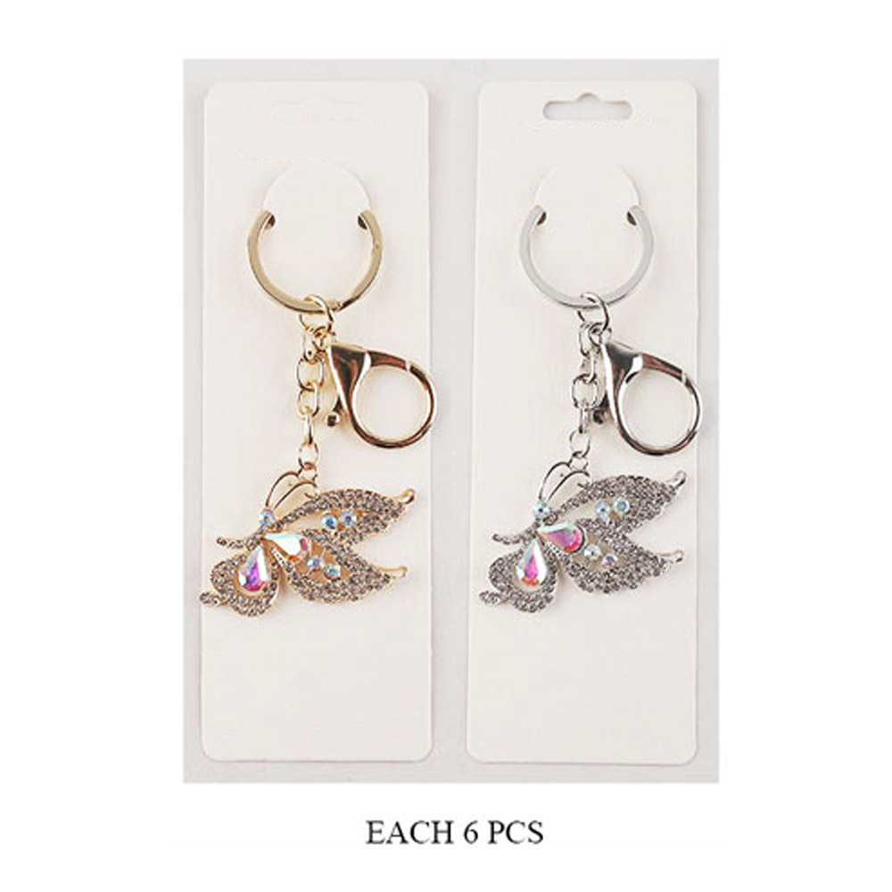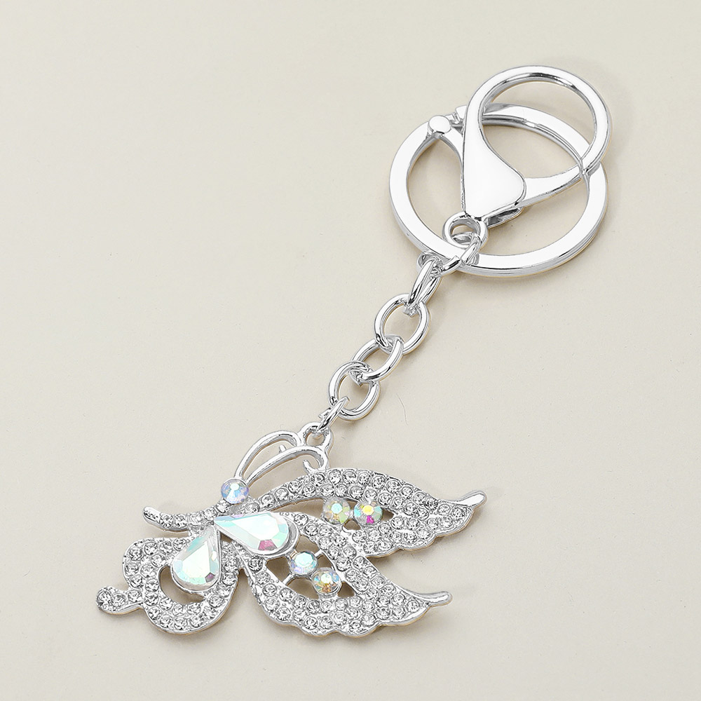 Details • Size : 1.75" X 2.75", 4" L • Enhance your everyday style with this Crystal Butterfly Keychain, featuring a dazzling gemstone design that adds a graceful touch to keys, purses, or backpacks. Perfect as a chic accessory or thoughtful gift, this butterfly charm captures elegance, sparkle, and timeless beauty. • Lead and Nickel Compliant