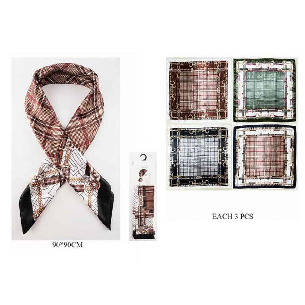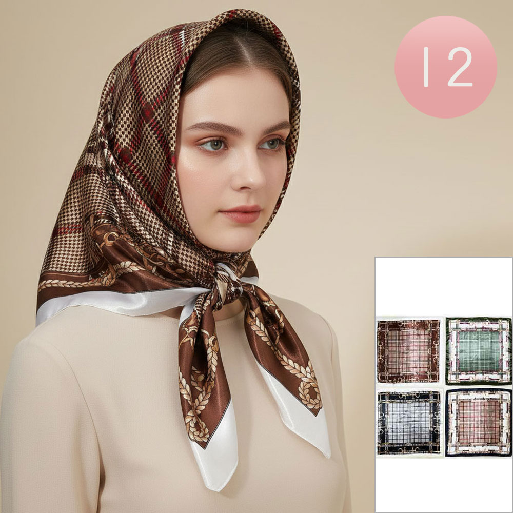 12PCS - Silky Feel Checkered Pattern Printed Square Scarves