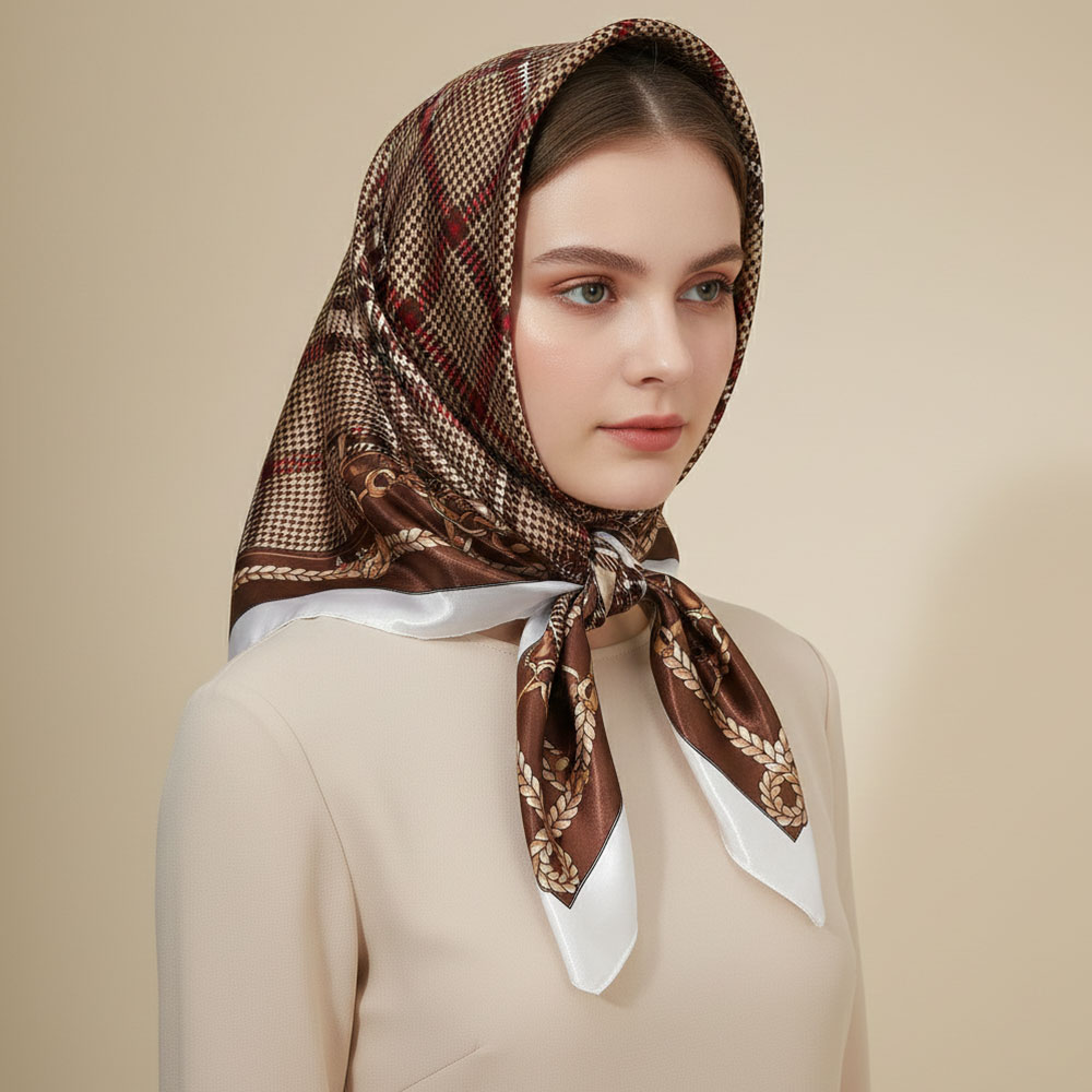 • Add timeless refinement to everyday outfits with this versatile square scarf featuring a refined check motif. Perfect for styling at the neck, hair, wrist, or bag, it offers effortless elegance for casual wear or elevated looks.