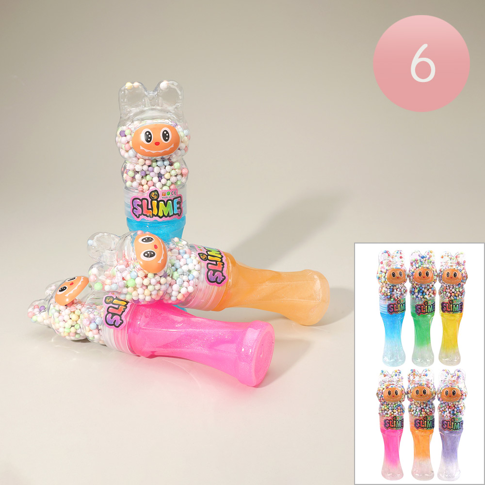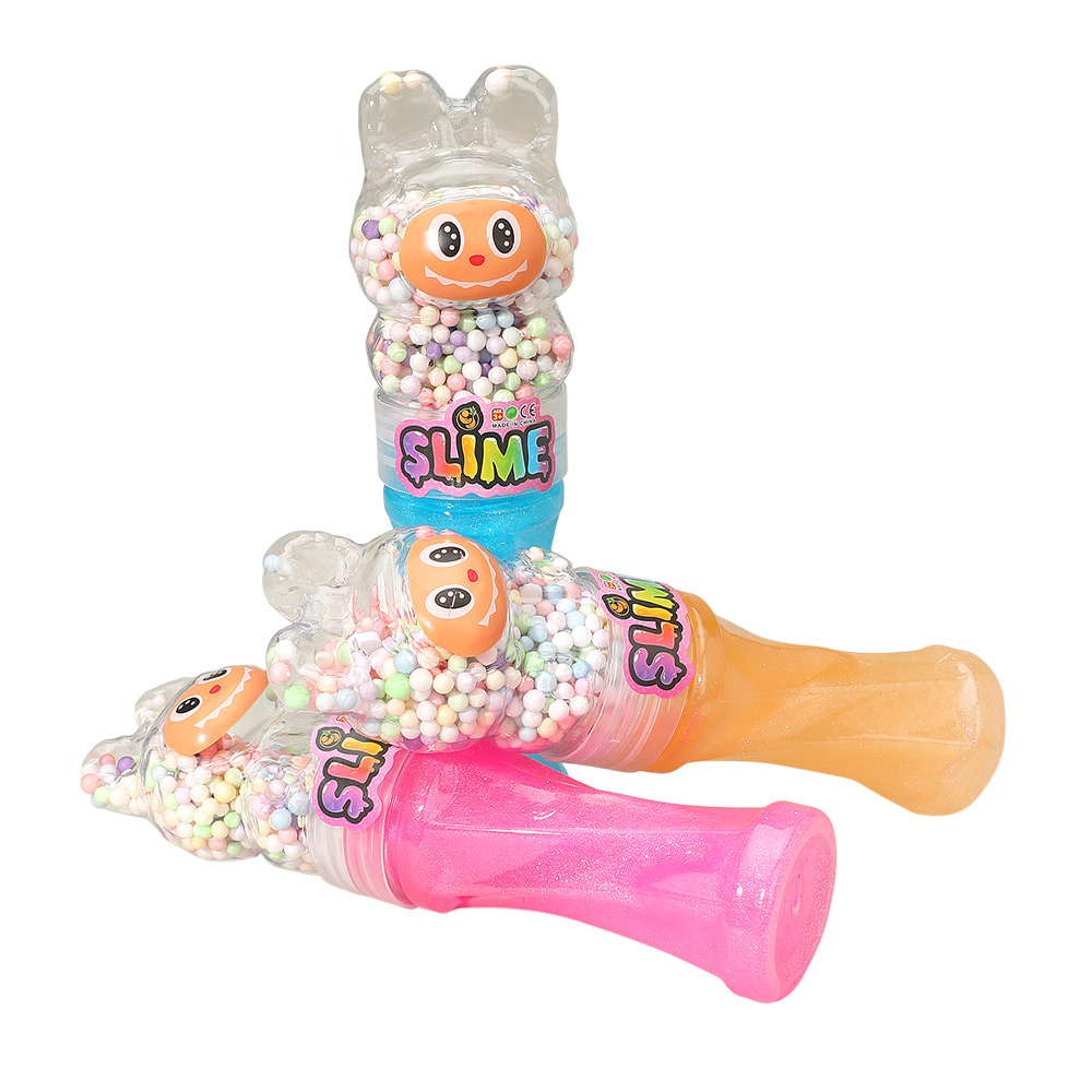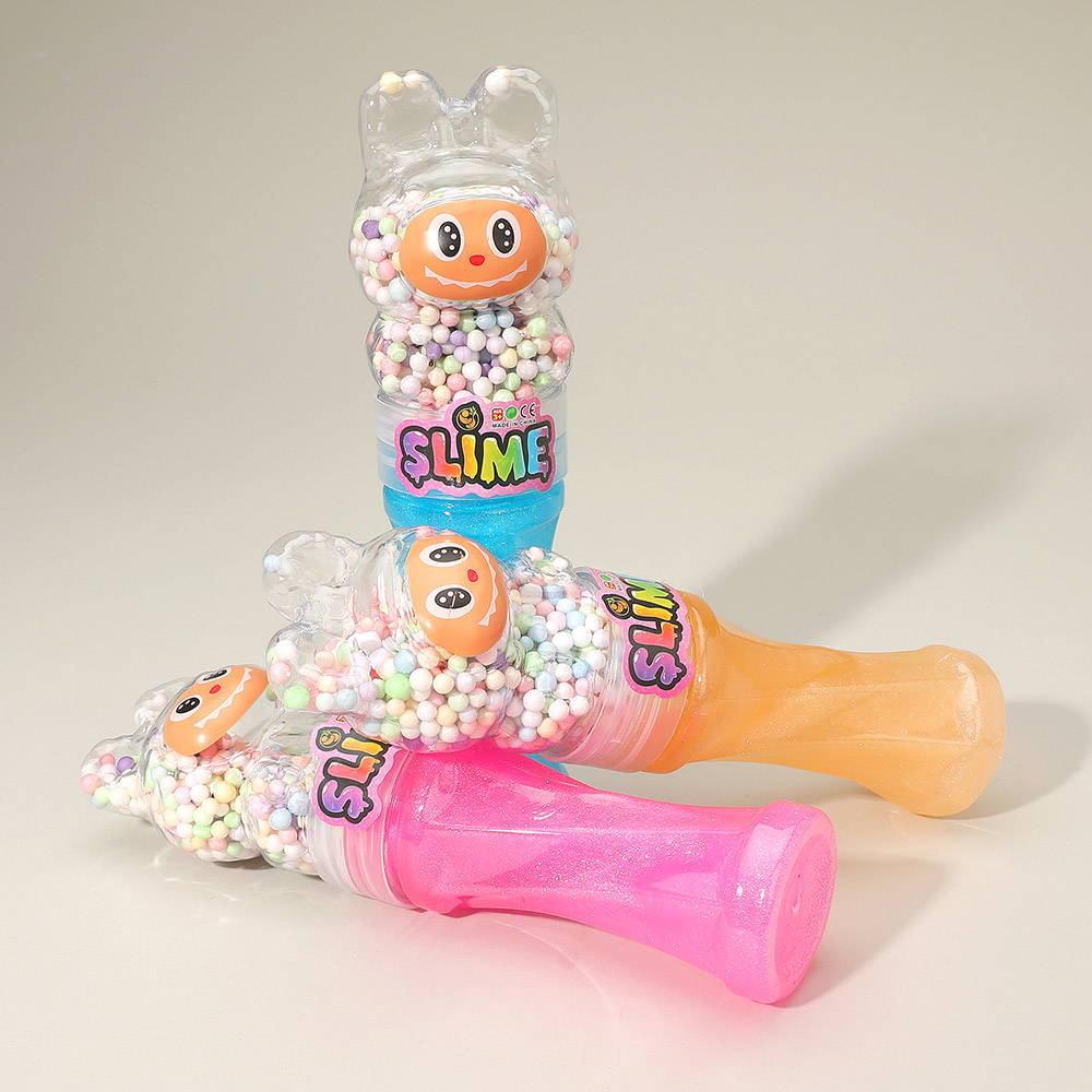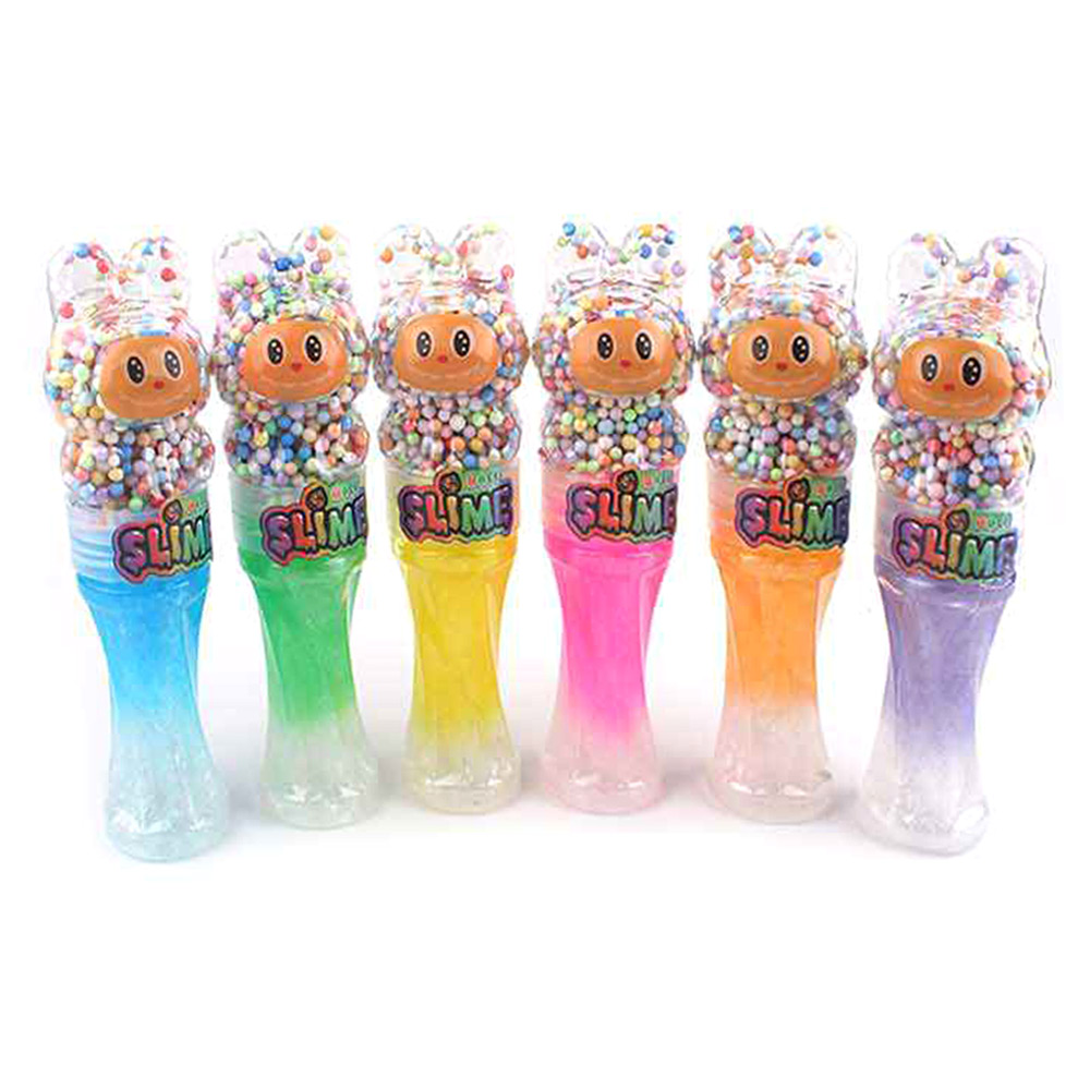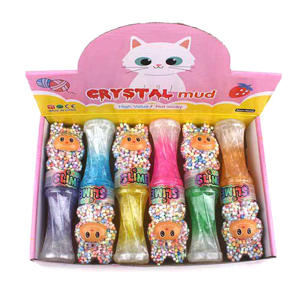 Details • Size : 8.7" L • Charming crystal mud slime set with adorable character containers filled with glitter slime and foam beads. Soft, stretchy, and satisfying to squish, perfect for kids’ playtime, party favors, or stress relief. Offers endless tactile fun and creativity in every glittery twist.