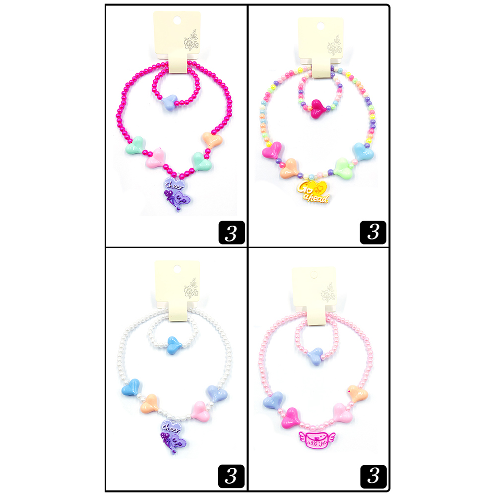 12 SET OF 2 - LOVE Message Heart Pendant Bow Pointed Beaded Kids Bracelet Necklace Sets