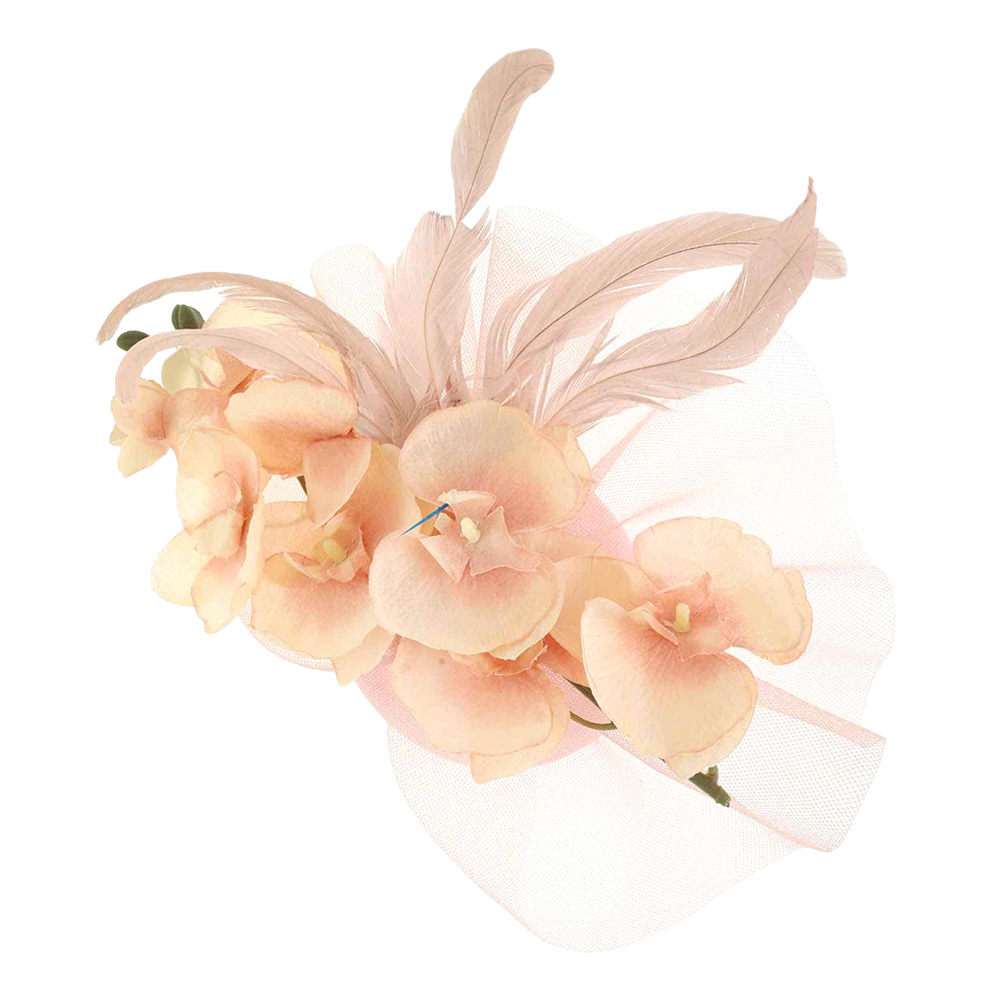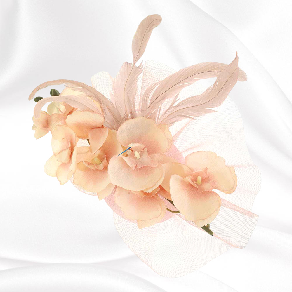 Feather Accent Mesh Floral Fascinator Hair Clip Headband