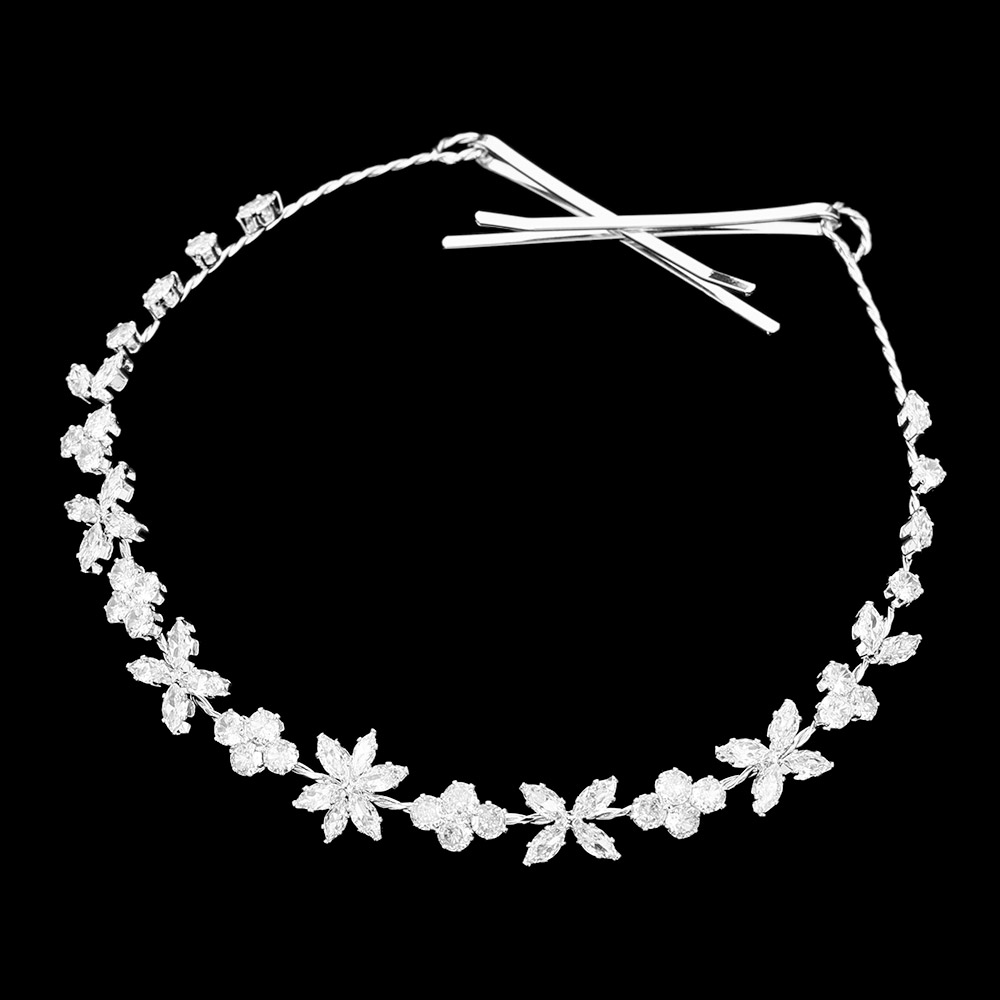 • Elegant bridal headband featuring sparkling teardrop crystals and rhinestone leaf accents arranged along a flexible vine. Includes secure pins for styling. Perfect for weddings, proms, and special occasions to add refined shimmer and detail.