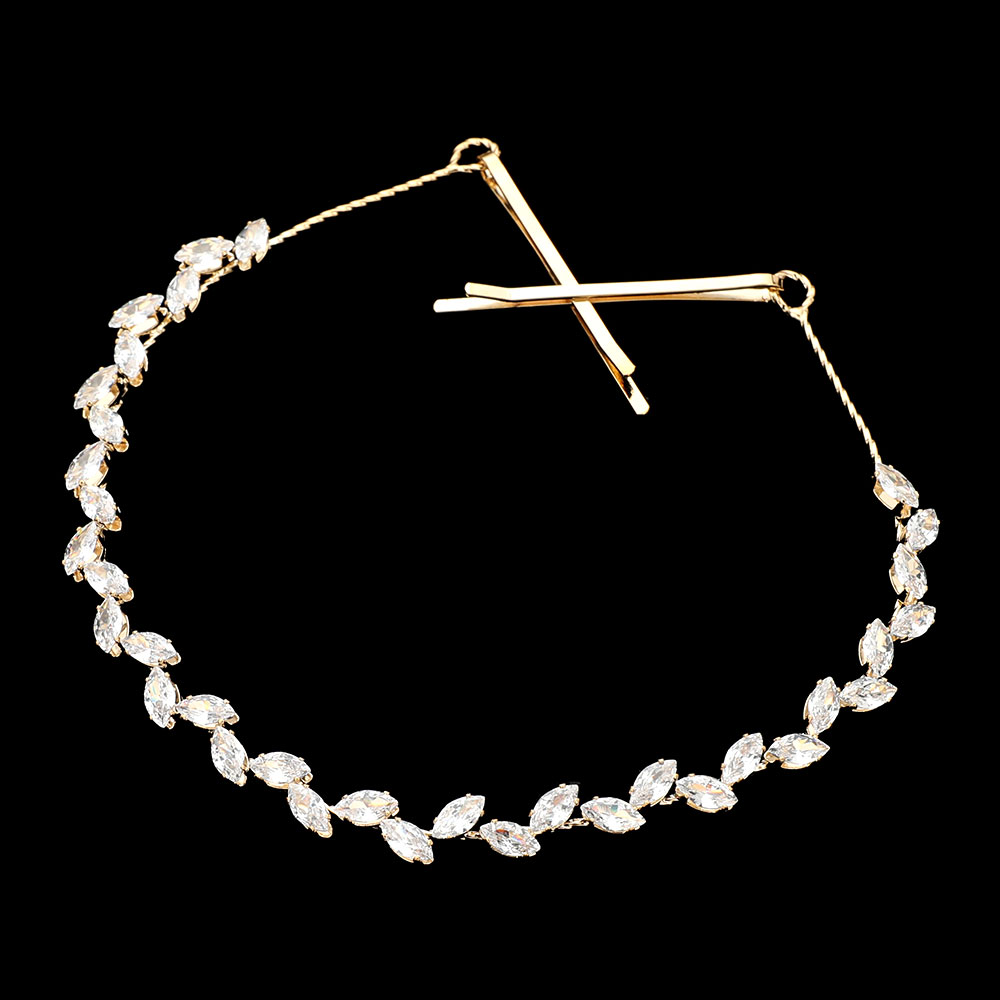 • This bridal crystal leaf hair vine brings refined sparkle to any wedding hairstyle. Featuring marquise-cut cz stones in a graceful vine pattern, it bends easily for customized placement around updos or braids, creating a timeless and elegant finishing touch for special occasions.