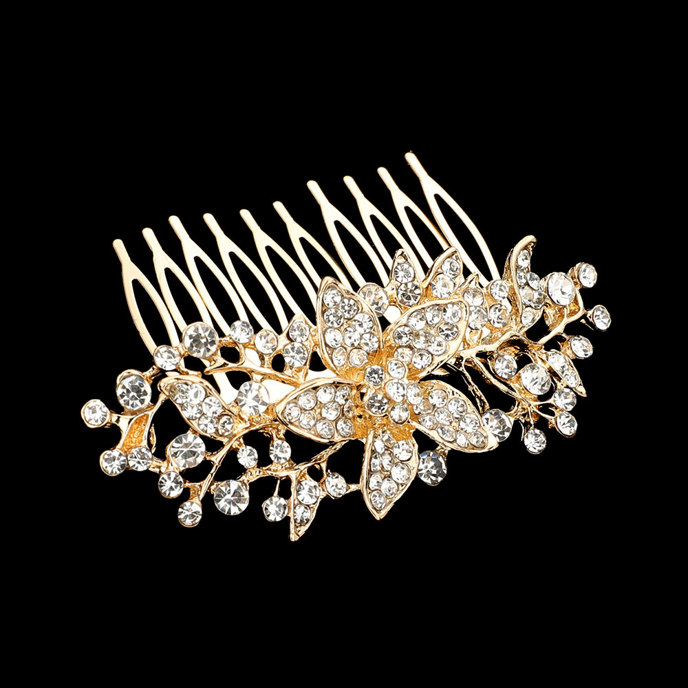 • Enhance your hairstyle with this sparkling floral crystal hair comb, crafted to add a touch of glamour and grace. Featuring dazzling crystal blossoms and delicate detailing, it’s perfect for weddings, parties, or elegant occasions, offering a timeless accent that shines beautifully.