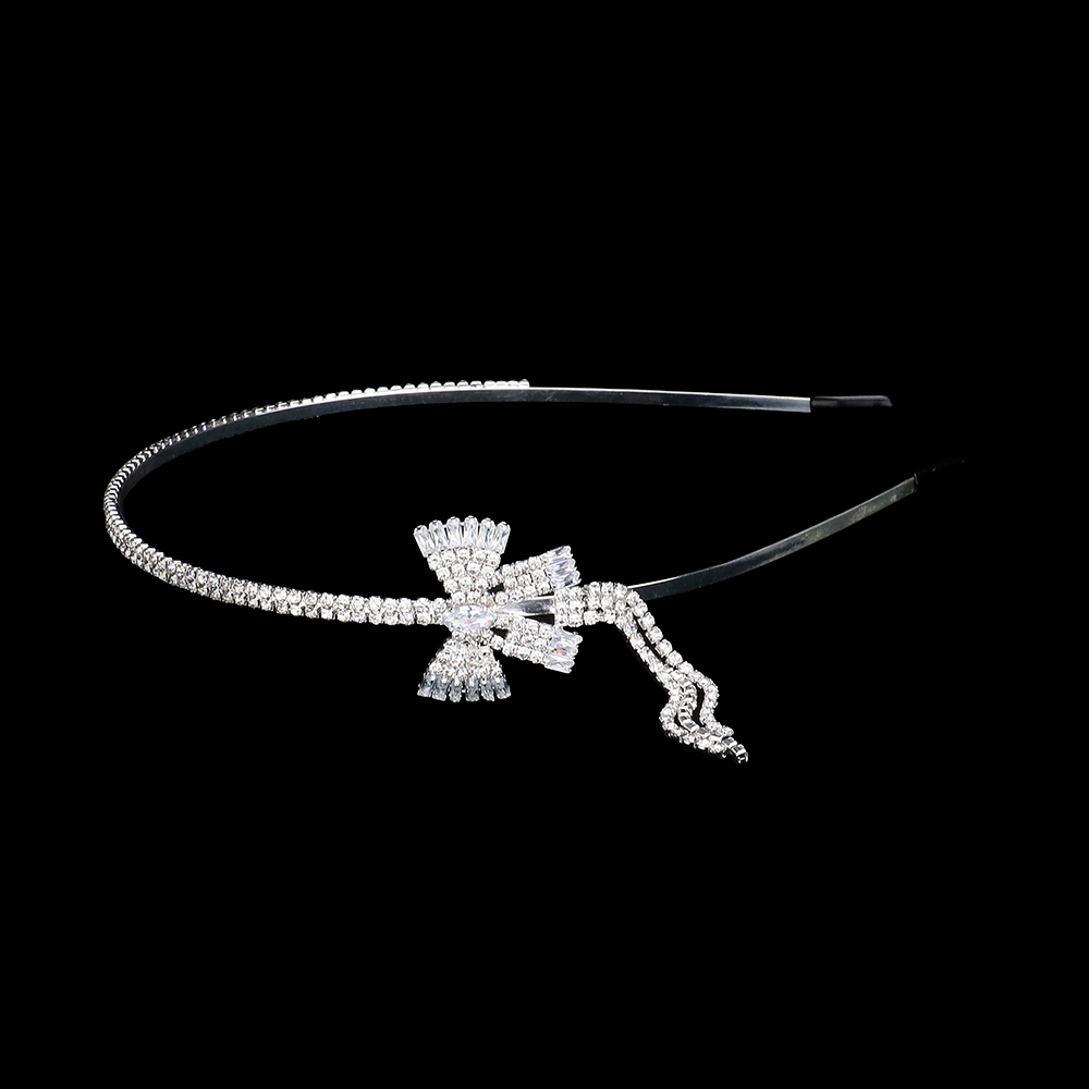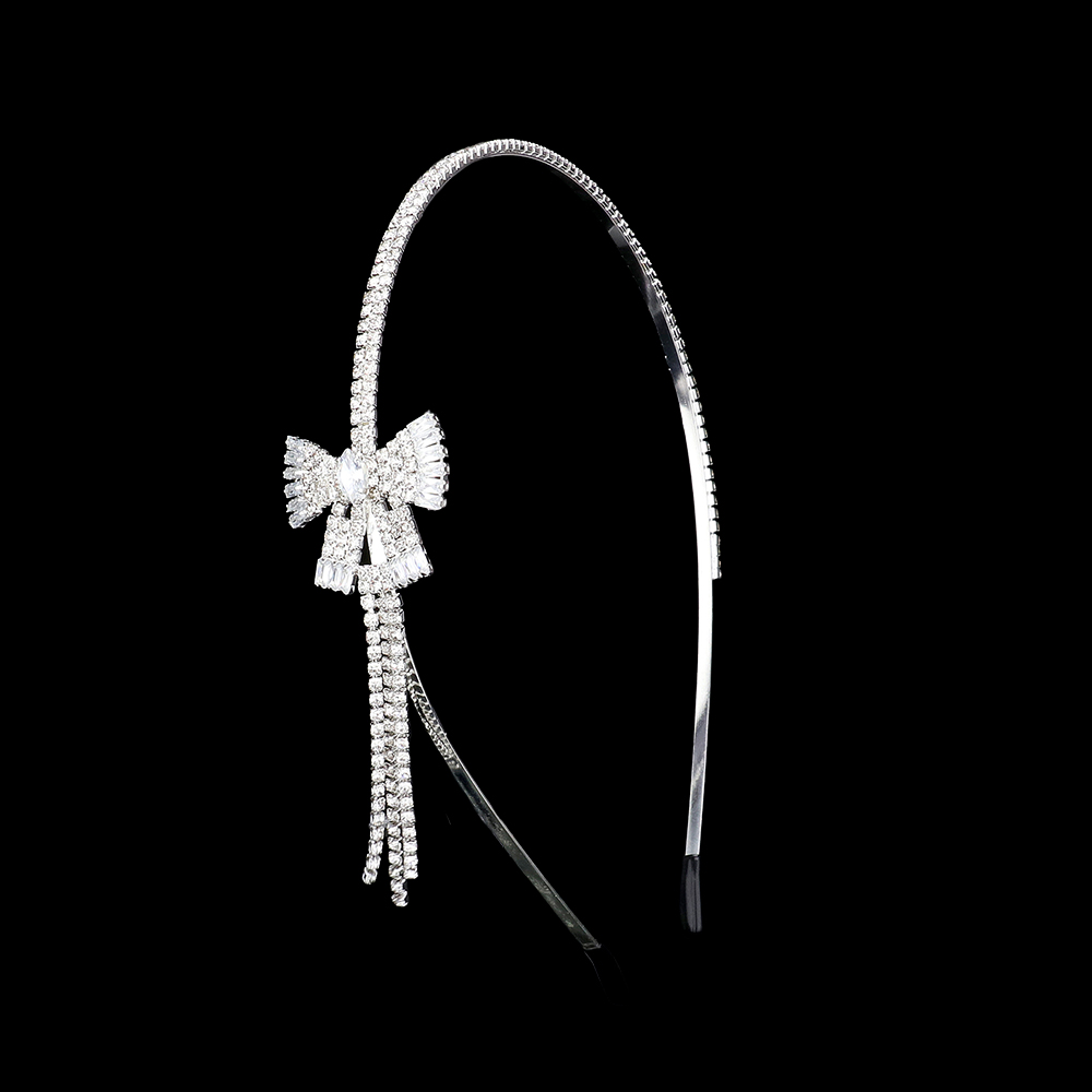 Rhinestone Paved Bow Fringe Pointed Headband