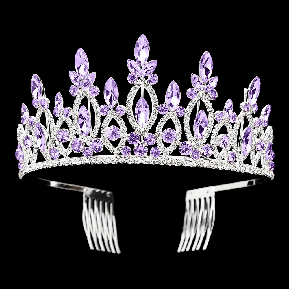 Marquise Stone Cluster Embellished Rhinestone Paved Crown Princess Tiara Marquise Stone Cluster Embellished Rhinestone Paved Crown Princess Tiara