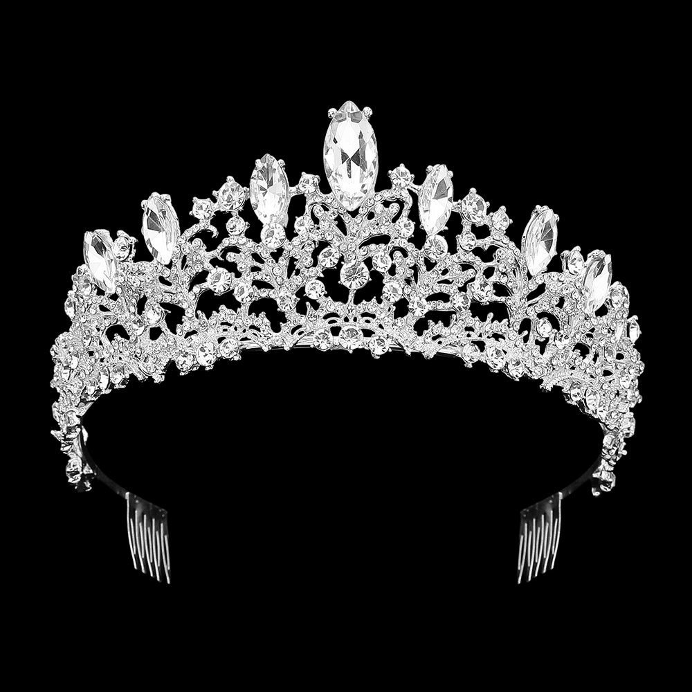 Details • Size : 2.5" H • This ornate tiara features a refined leaf-inspired design accented with brilliant crystal detailing for a radiant, regal finish. Ideal for formal events, weddings, or photoshoots, it adds a luxurious touch that enhances any special-occasion look with timeless elegance and sparkle.