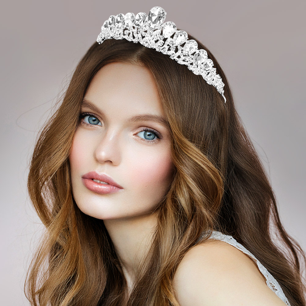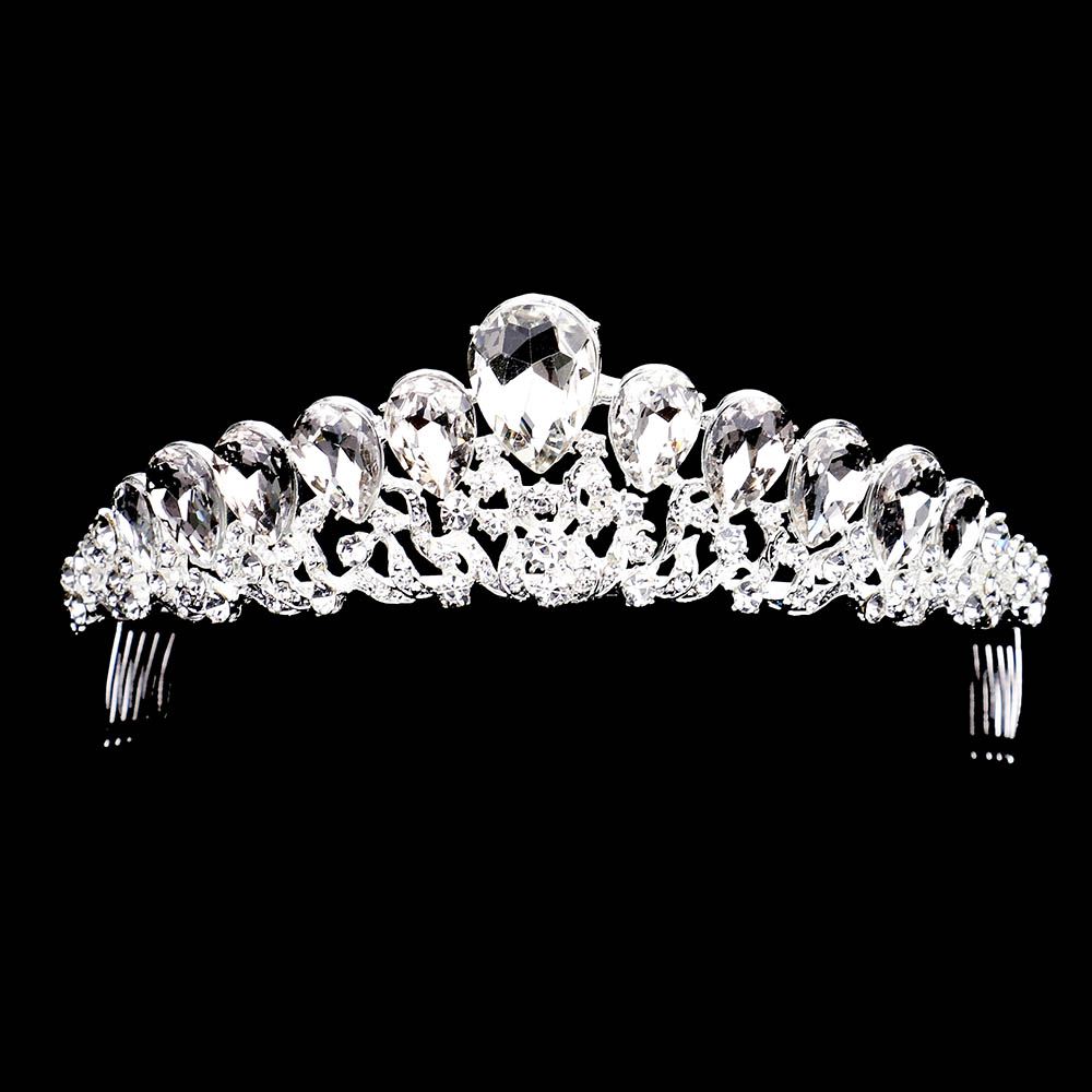 Teardrop Crystal Rhinestone Pave Princess Tiara