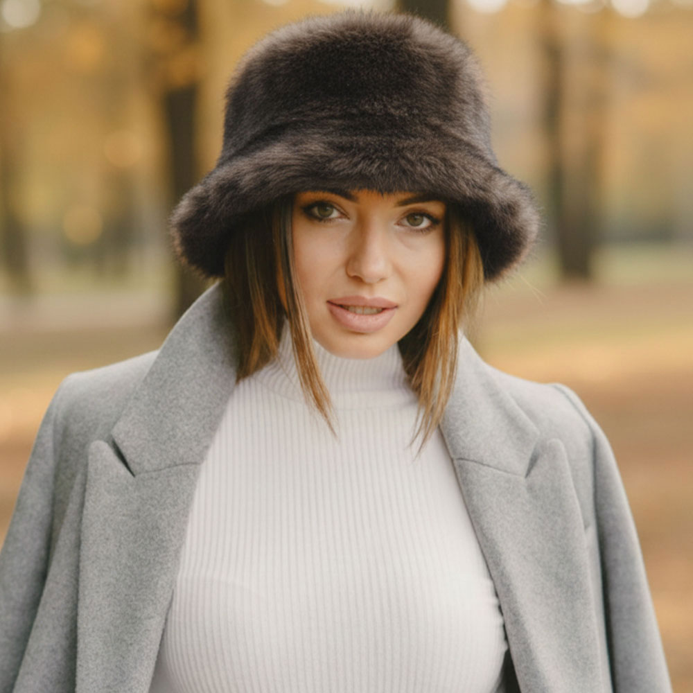 Details • Size : One Size • Material : 100% Polyester • Plush bucket hat with a cozy look, adjustable inner fit, and structured silhouette for everyday comfort. Great for casual styling, outdoor wear, travel, or seasonal outfits, offering easy packability and a fashion-forward finish that complements multiple wardrobes.