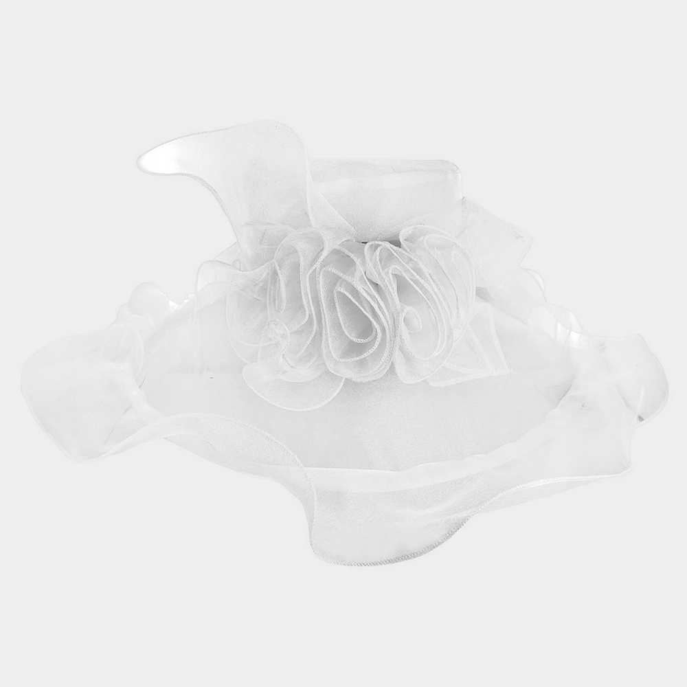 Flower Accented Abstract Leaf Patterned Dressy Hat