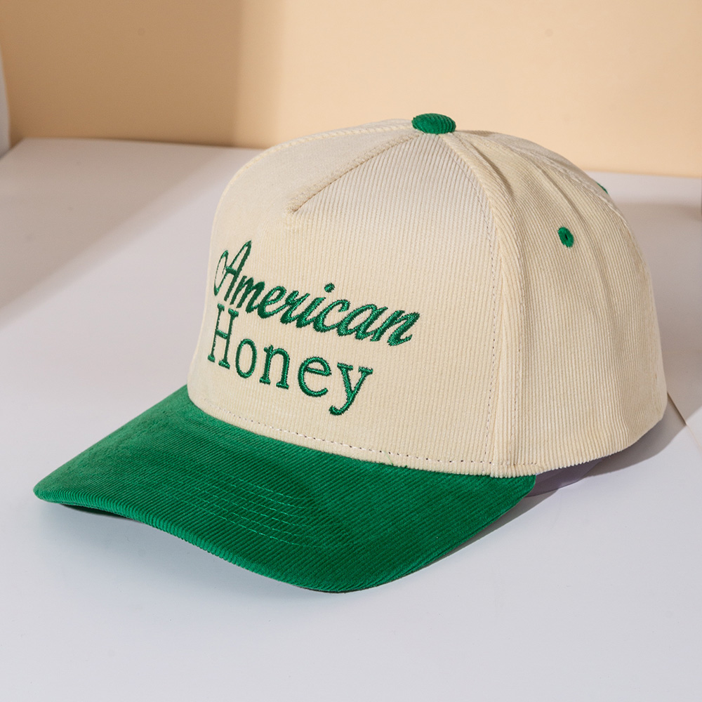AMERICAB HONEY Message Embroidered Five Panel Canvas Snapback Baseball Cap
