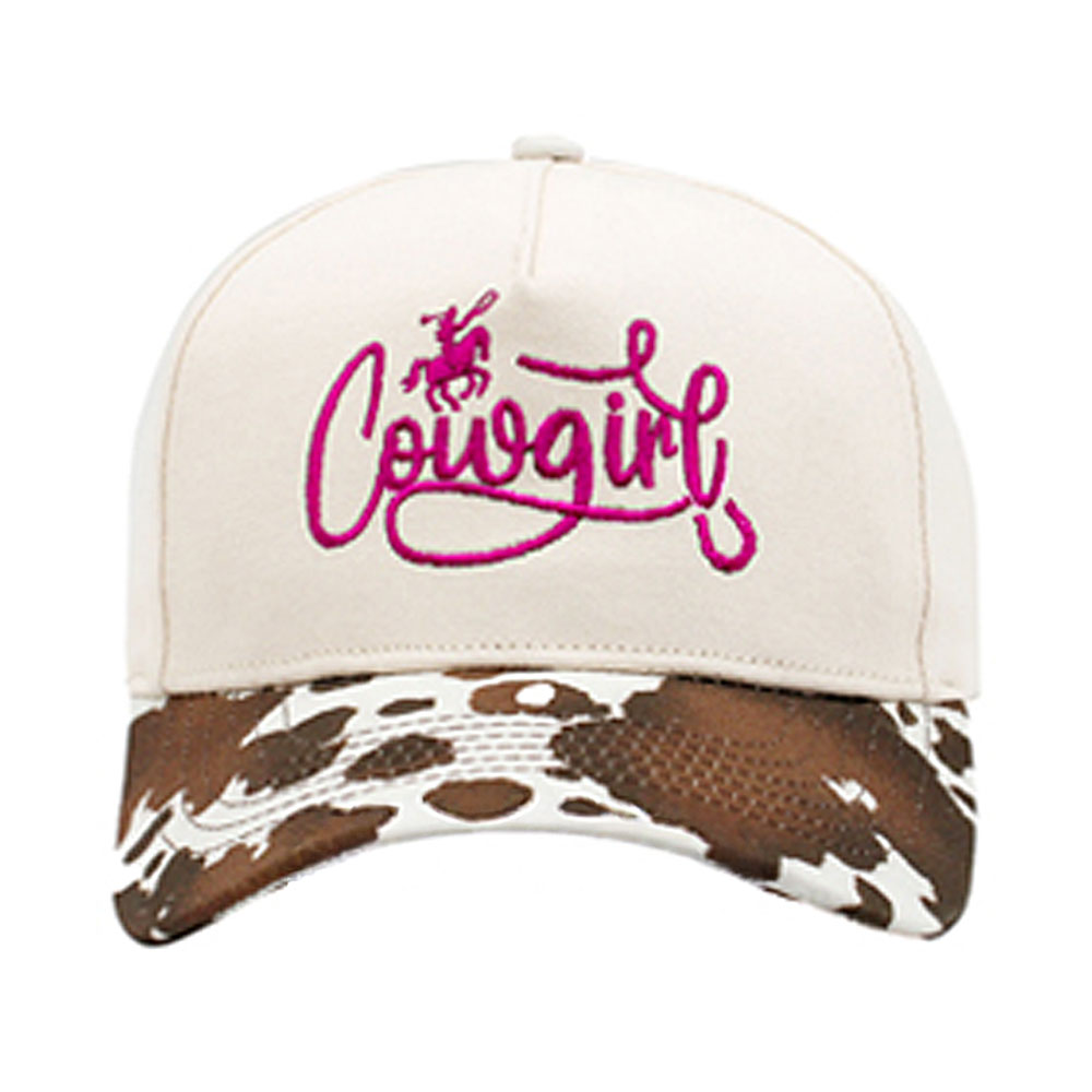 Animal Pattern Brim COWGIRL Message Embroidered Five Panel Canvas Baseball Cap