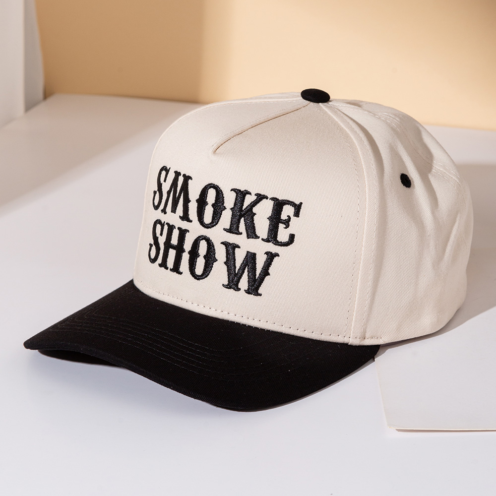 SMOKE SHOW Message Embroidered Five Panel Canvas Snapback Baseball Cap