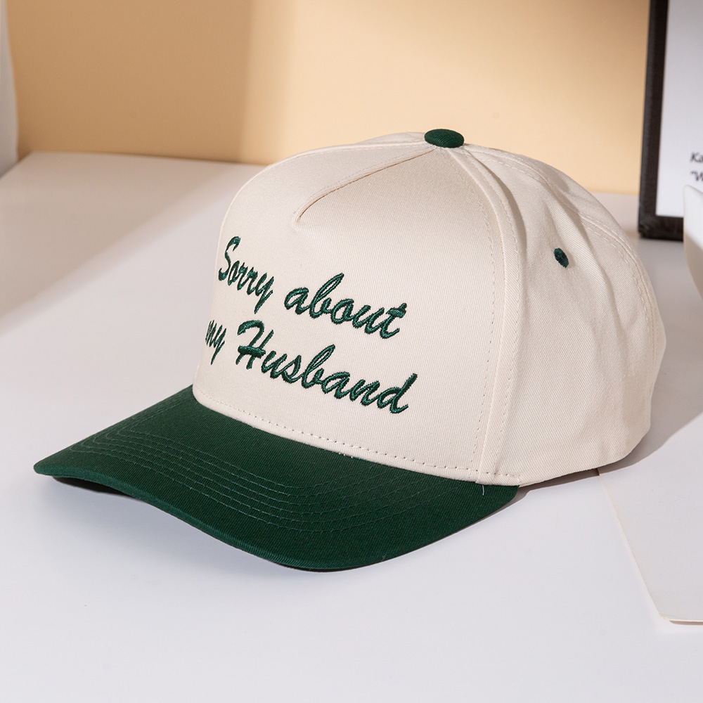 SORRY ABOUT MY HUSBAND Message Embroidered Five Panel Canvas Snapback Baseball Cap