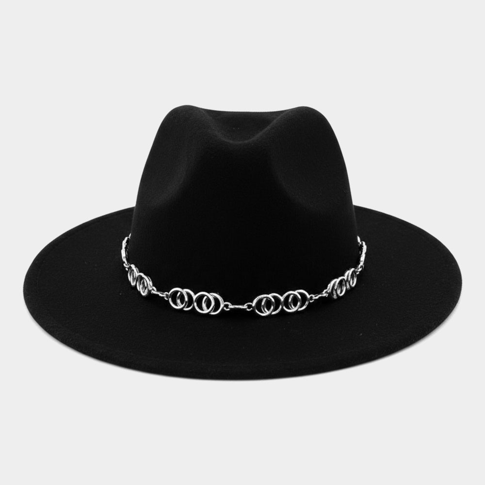 Decorative Chain Accent Elegant Wide-Brim Western Fedora Hat