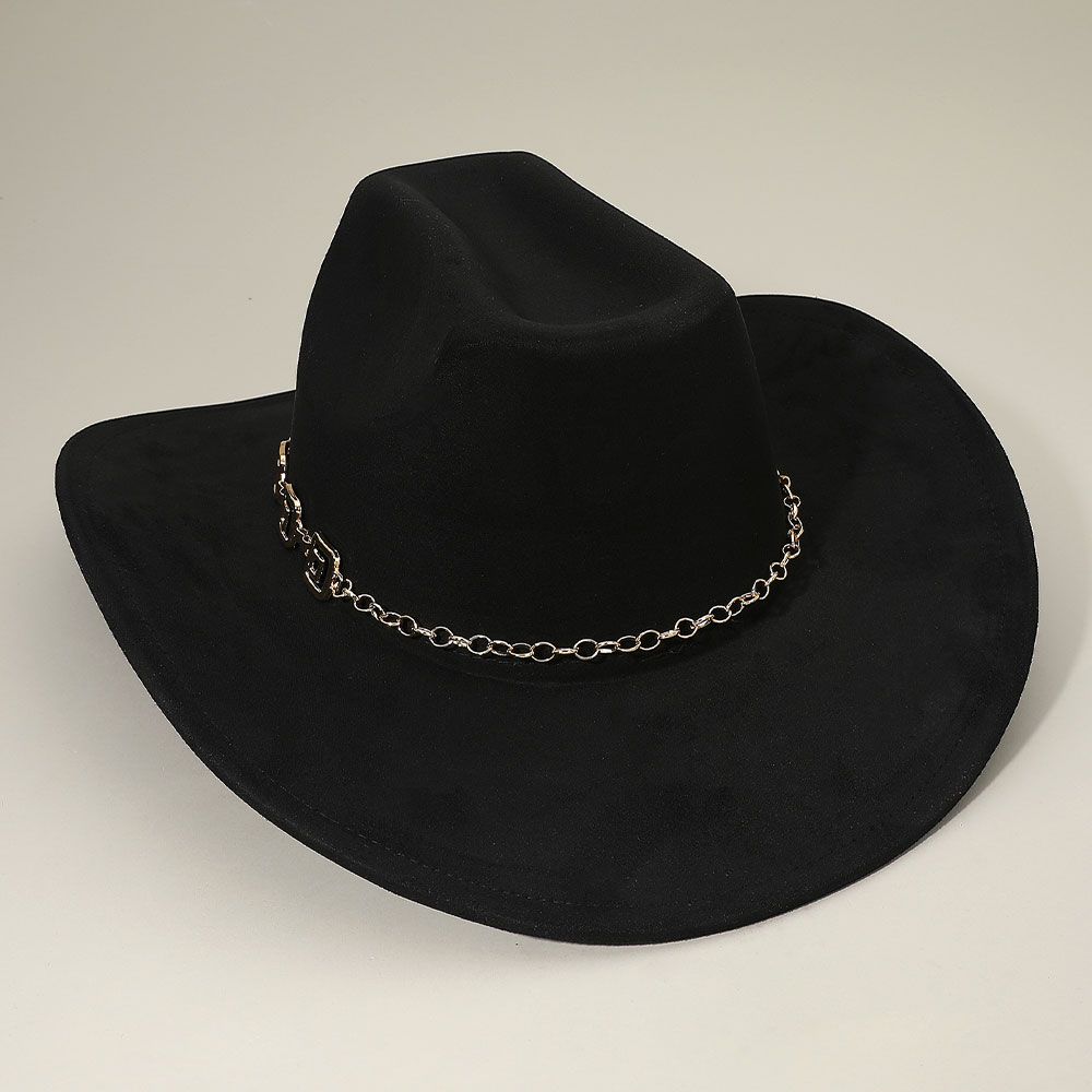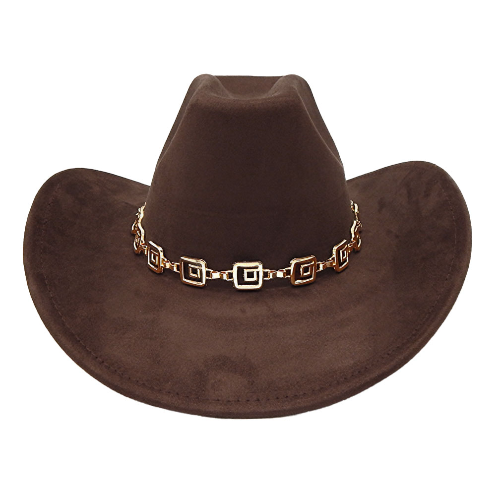 Geometric Metal Chain Accent Western Cowboy Fedora Hat