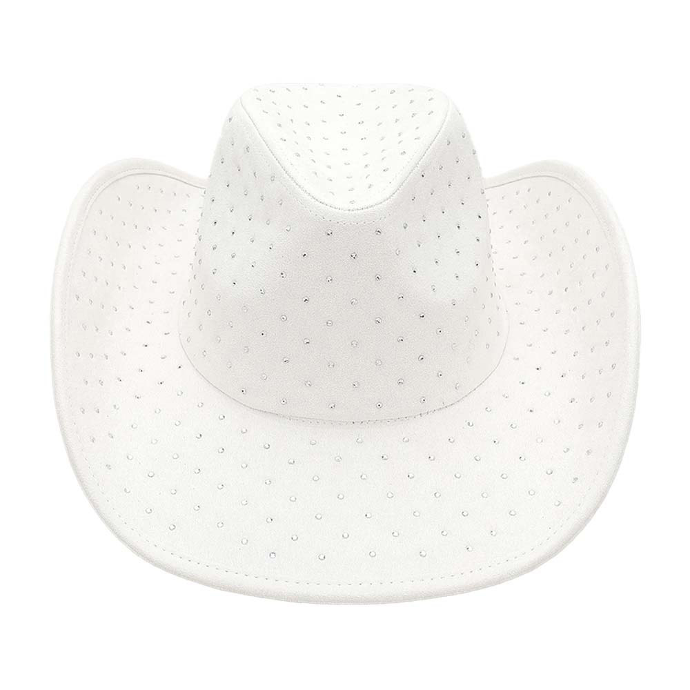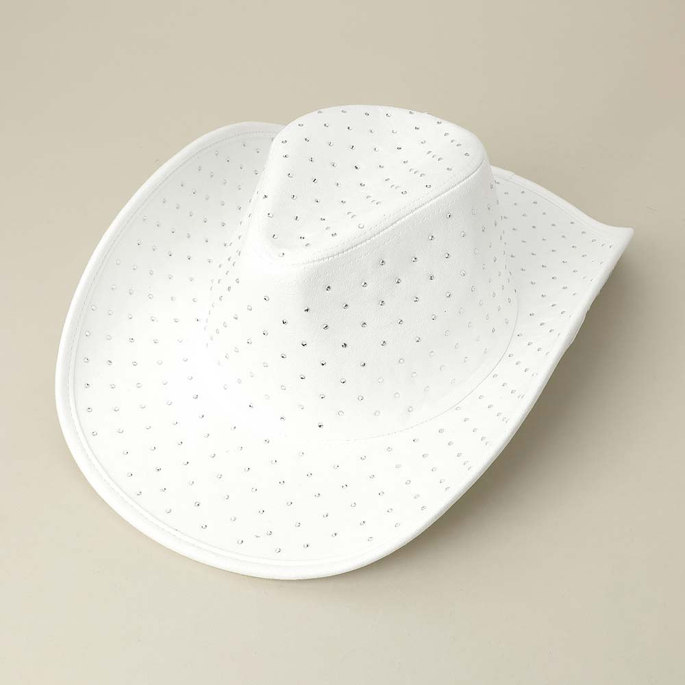 • Add bold flair to your western look with this cowboy hat adorned in all-over rhinestones. Its classic silhouette is elevated with shimmering accents, making it perfect for concerts, festivals, or standout street style.