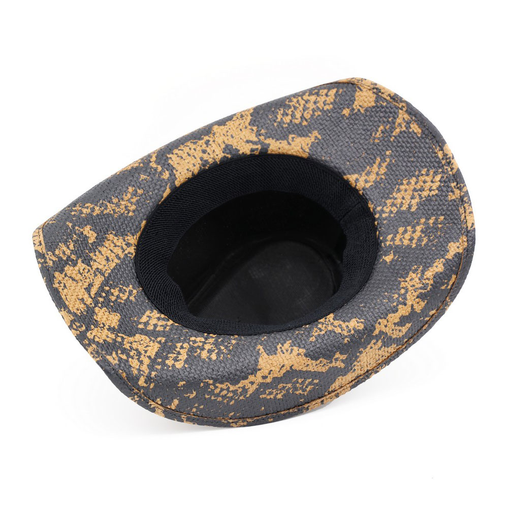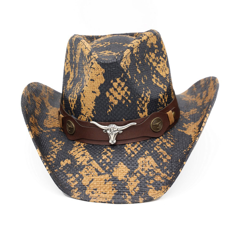 Details • Size : One Size • Material : 100% Paper • Classic western cowboy hat designed with a structured crown and curved brim, finished with a bold bull skull accent for a rugged, statement look. Ideal for western fashion, festivals, rodeo styling, and boutique collections seeking iconic cowboy appeal with modern attitude.