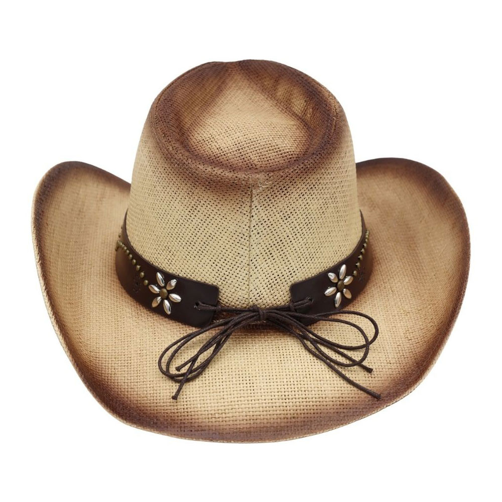 Details • Size : One Size • Material : 100% Paper • Classic western cowboy hat designed with a structured crown, shaped brim, and decorative studded band featuring a bold emblem accent. Ideal for western fashion, rodeo outfits, festivals, and boutique collections, delivering a timeless cowboy silhouette with rugged character and eye-catching detail.