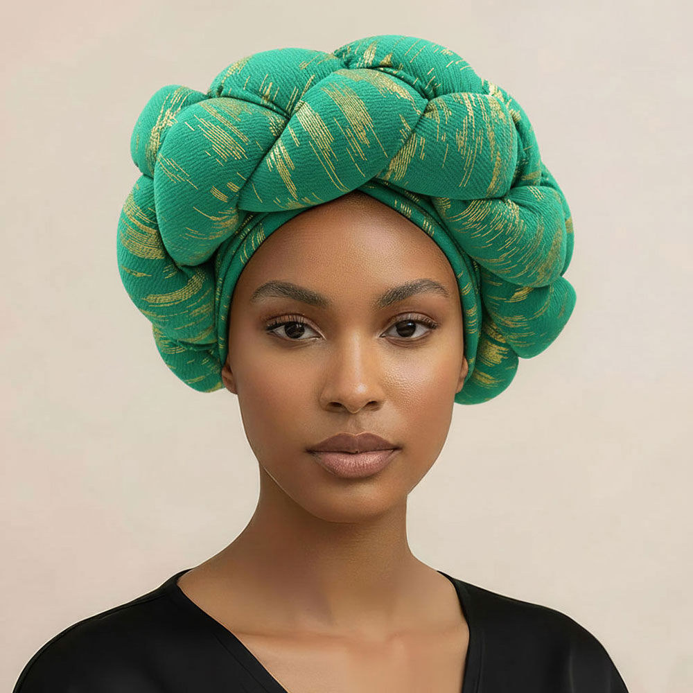 • Statement braided padded headwrap turban featuring a thick knot design and full wrap style for standout volume. Soft, comfortable fit ideal for fashion styling, cultural wear, or special events. Adds bold texture and elevated flair to any outfit.