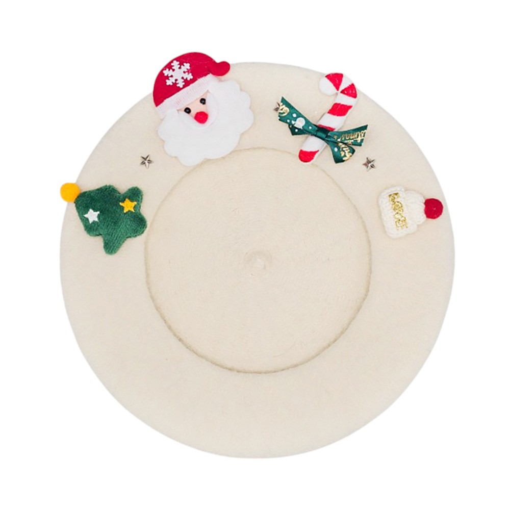 • Festive Christmas beret hat featuring a cheerful Santa design, candy cane, and holiday-themed details. A playful accessory perfect for parties, gatherings, and seasonal outfits. Add charm and holiday cheer to your winter look with this fun Christmas hat, ideal for gifting or festive celebrations.