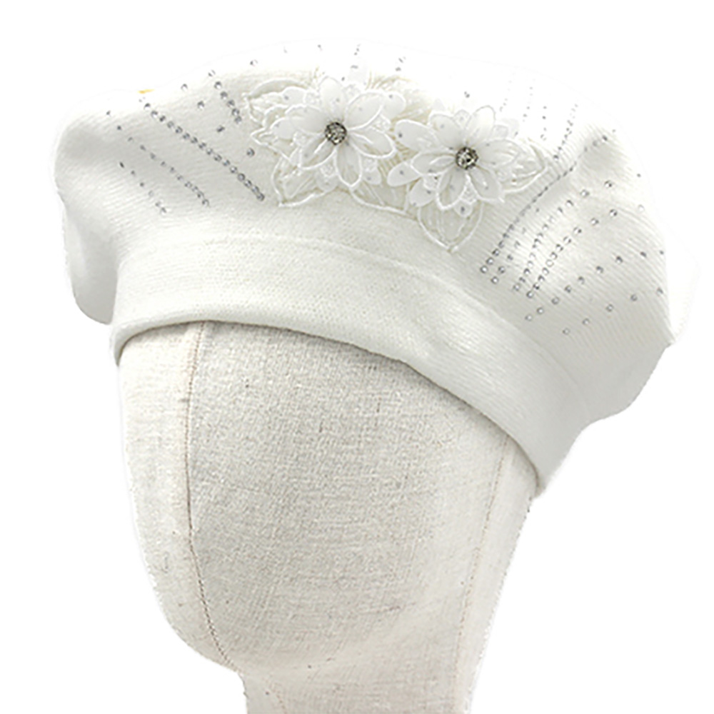 Floral Applique Accent Winter Beret Hat Floral Applique Accent Winter Beret Hat Floral Applique Accent Winter Beret Hat